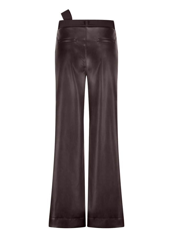 De Lexie faux leather trousers van Studio Anneloes stralen kracht en stijl uit. De diepe Espresso tint en de elegante, wijde pijpen geven deze broek een moderne, zelfverzekerde look. Dankzij de combinatie van faux leather en Travelstof voelt hij niet alleen luxueus aan, maar zit hij ook uitzonderlijk comfortabel — perfect voor een outfit met een stoere, chique twist.