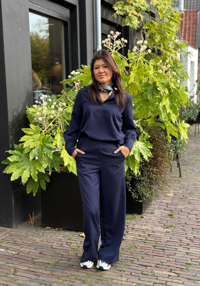 De Sofie pant van Bardou is een wijdvallende pantalon met elastische band in de taille. De broek wordt geleverd met bijpassende touwtjes, deze kun je vastknopen aan de onderzijde van de broek voor een speels effect!
