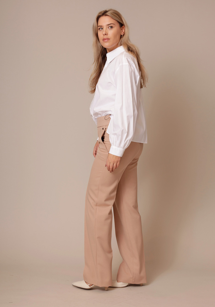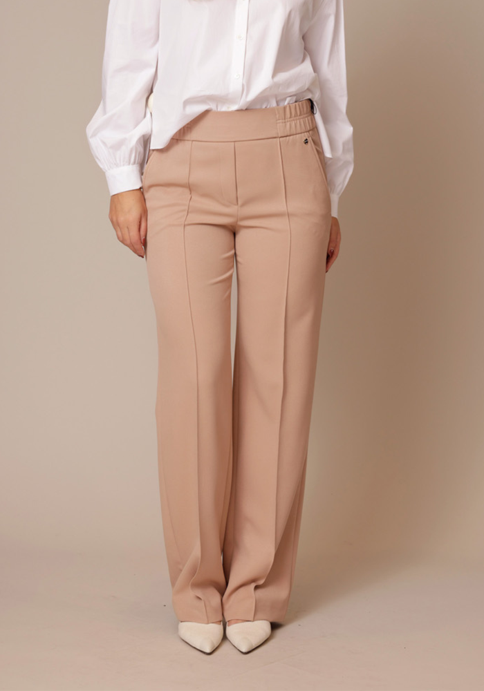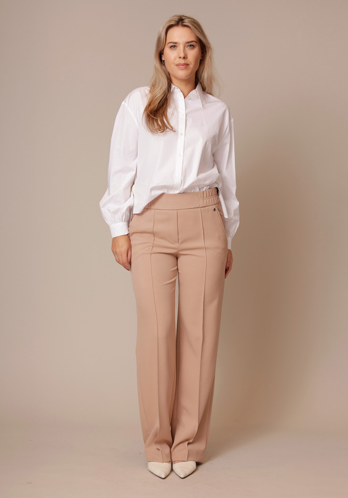 De WASHINGTON-broek van Marccain heeft een wijde pasvorm met extra lange pijpen en een gestikte bies. Het instapmodel zit supercomfortabel en de vleugelzakken zijn lekker praktisch. Een klassiek design met een moderne, relaxte look – makkelijk te stylen voor elke dag.