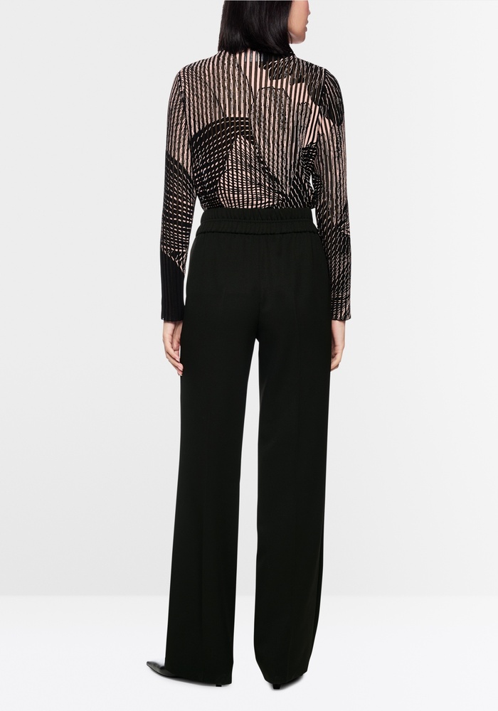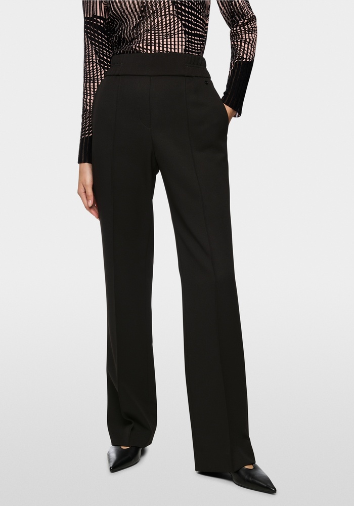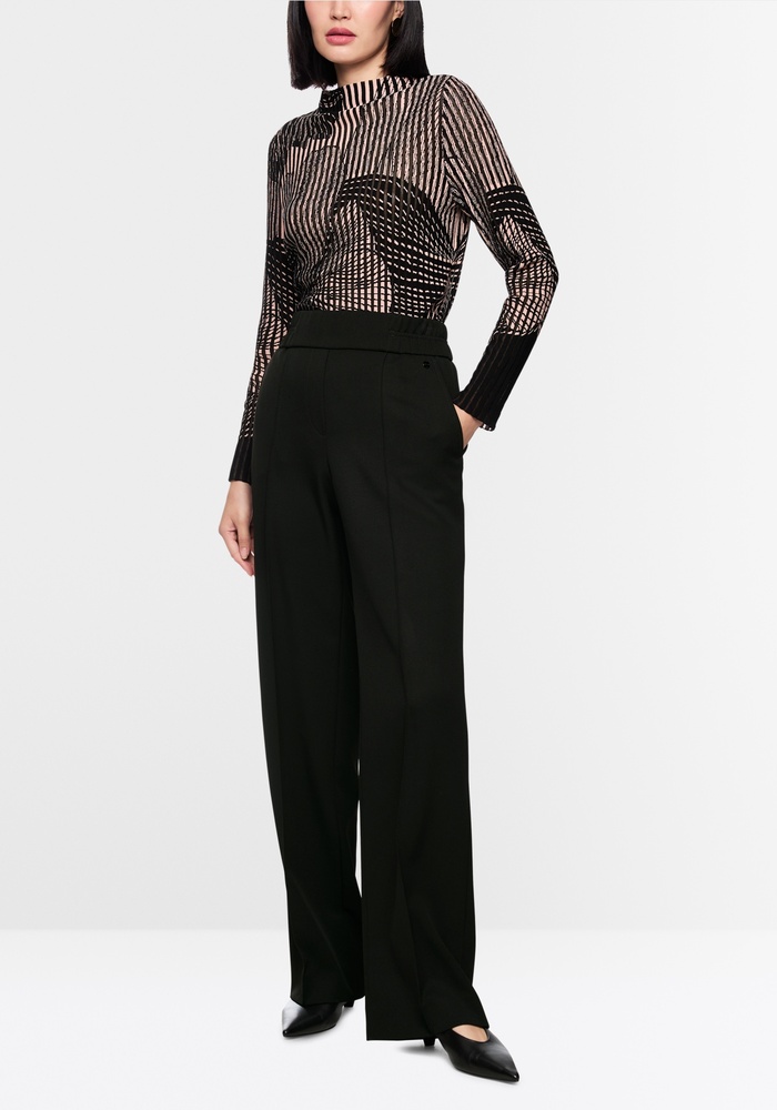 De WASHINGTON-broek van Marccain heeft een wijde pasvorm met extra lange pijpen en een gestikte bies. Het instapmodel zit supercomfortabel en de vleugelzakken zijn lekker praktisch. Een klassiek design met een moderne, relaxte look – makkelijk te stylen voor elke dag.