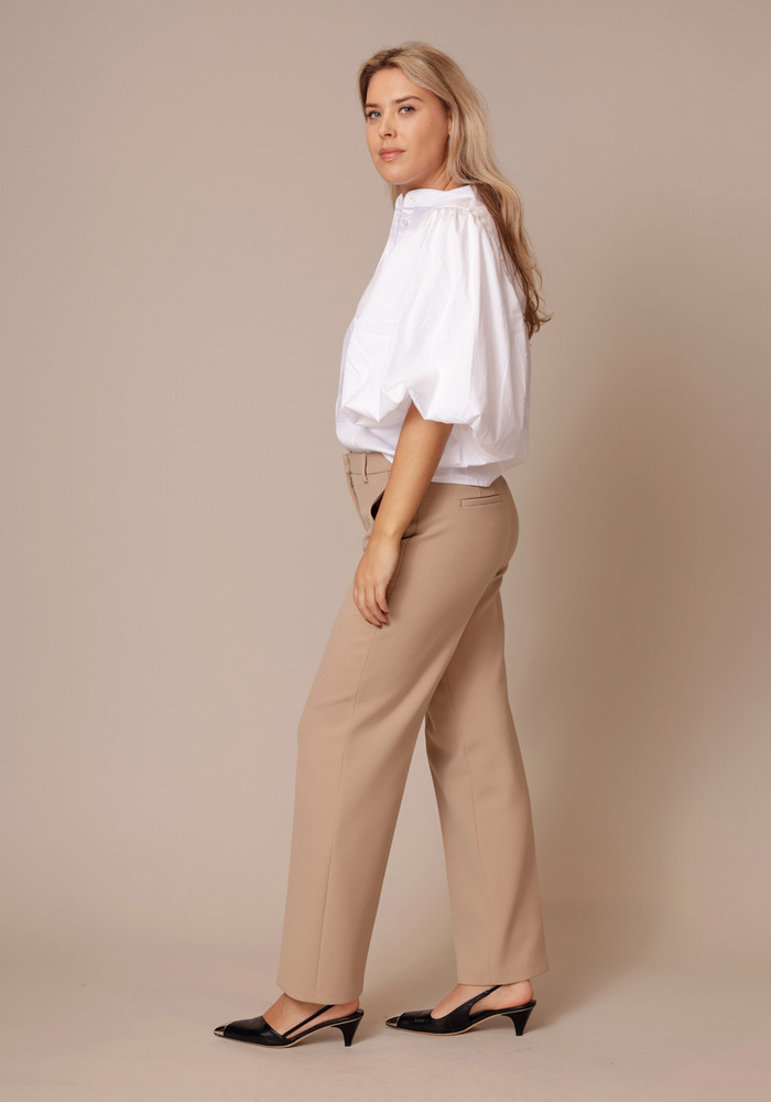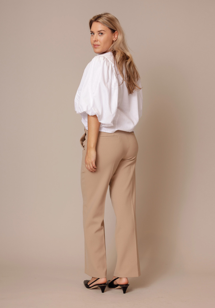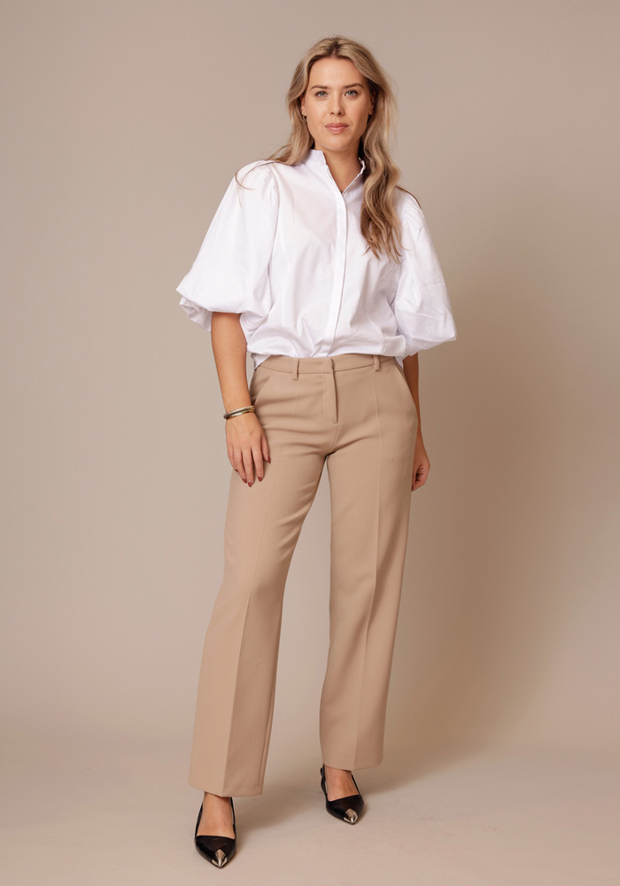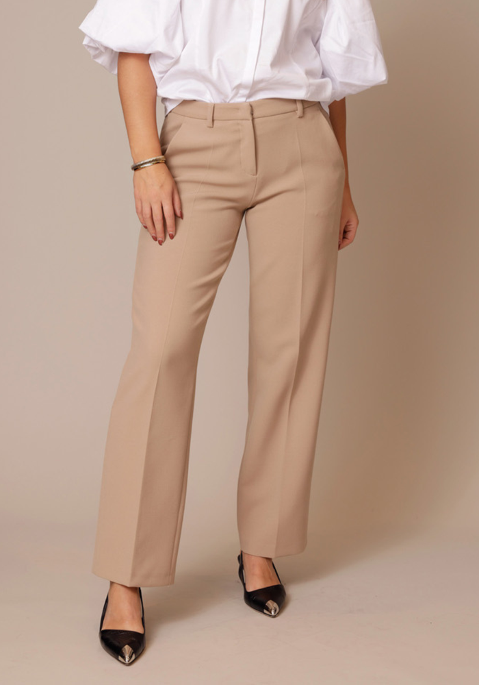 De Goldy pants van Cambio is een nette pantalon met een wijd uitlopende pijp. De broek heeft een knoop -en ritssluiting.