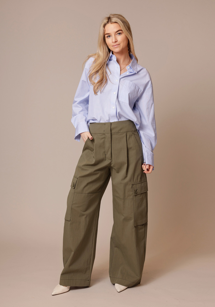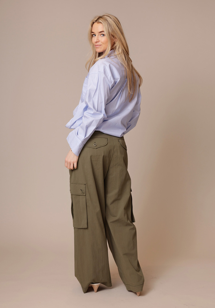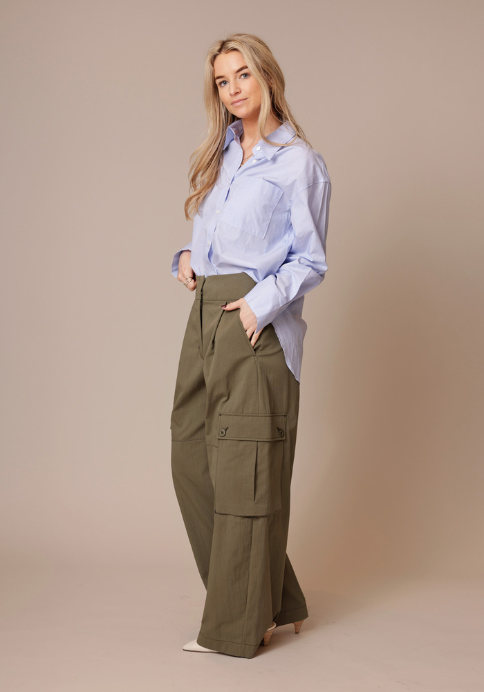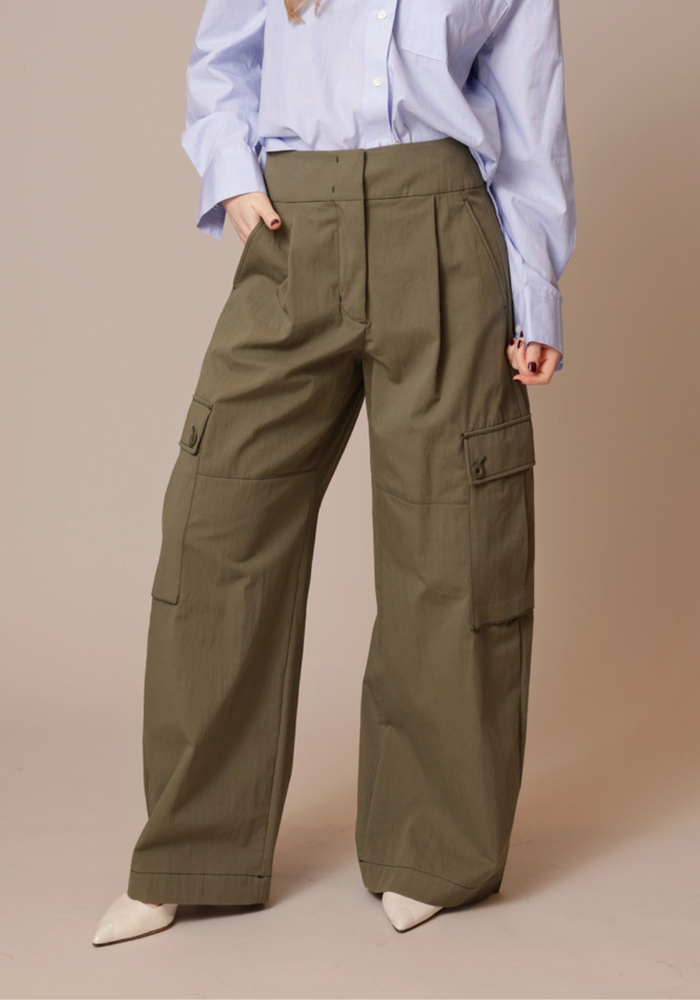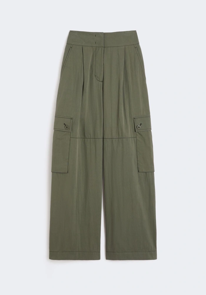 Deze broek van Weekend MaxMara heeft een brede pijp met tailleplooien, een hoge taille met een verborgen ritssluiting en haak-en-oogsluiting, schuine steekzakken aan de zijkant en achterzakken met knopen en klep. Extra cargo-style opgestikte zakken op de benen geven de broek een functionele, stoere uitstraling.