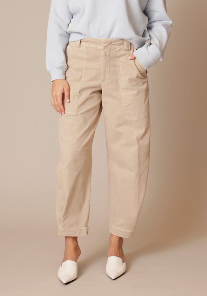 De Rhannon jeans van Closed heeft een middelhoge taille en heeft een enkellengte. De jeans heeft een knoop -en ritssluiting en aan de onderzijde is de broek smaller te maken d.m.v. drukknoopjes.