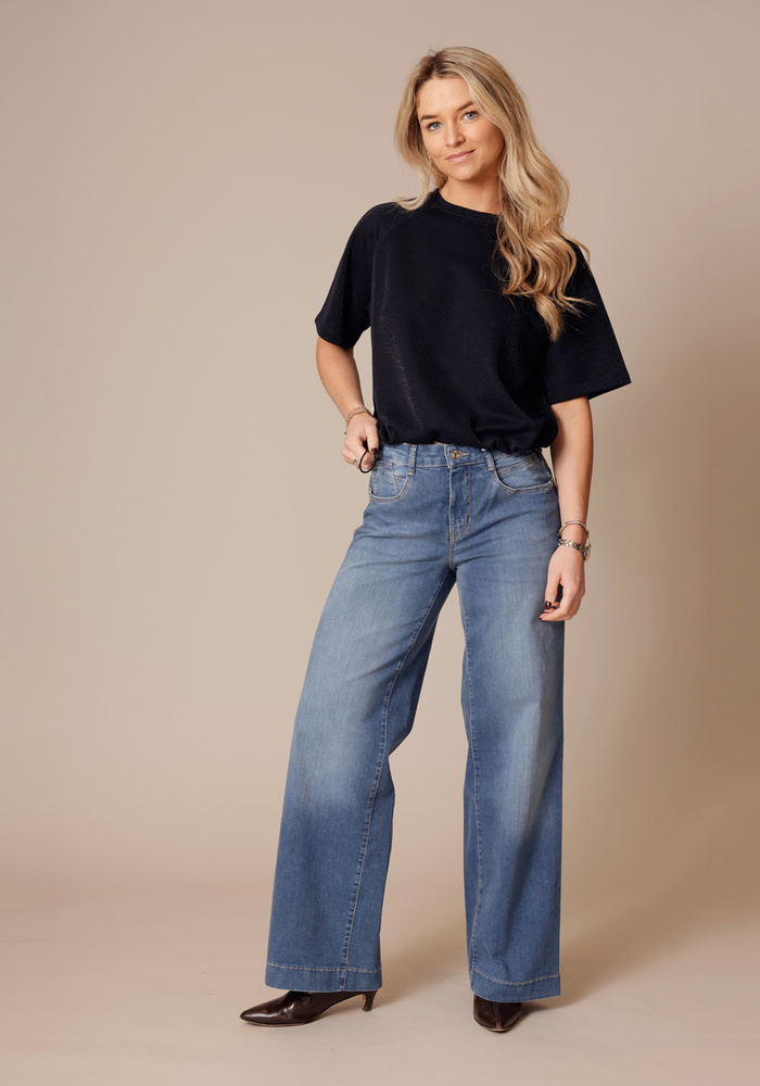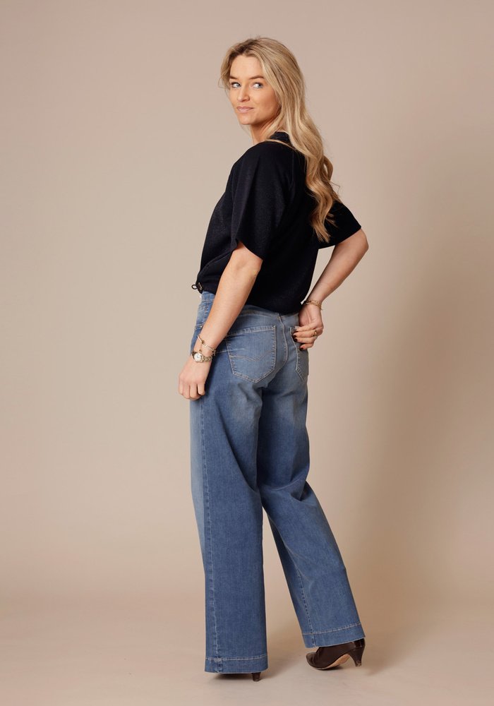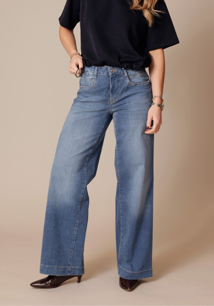 De Wide jeans van Mac is een wijde broek met knoop- en ritssluiting.