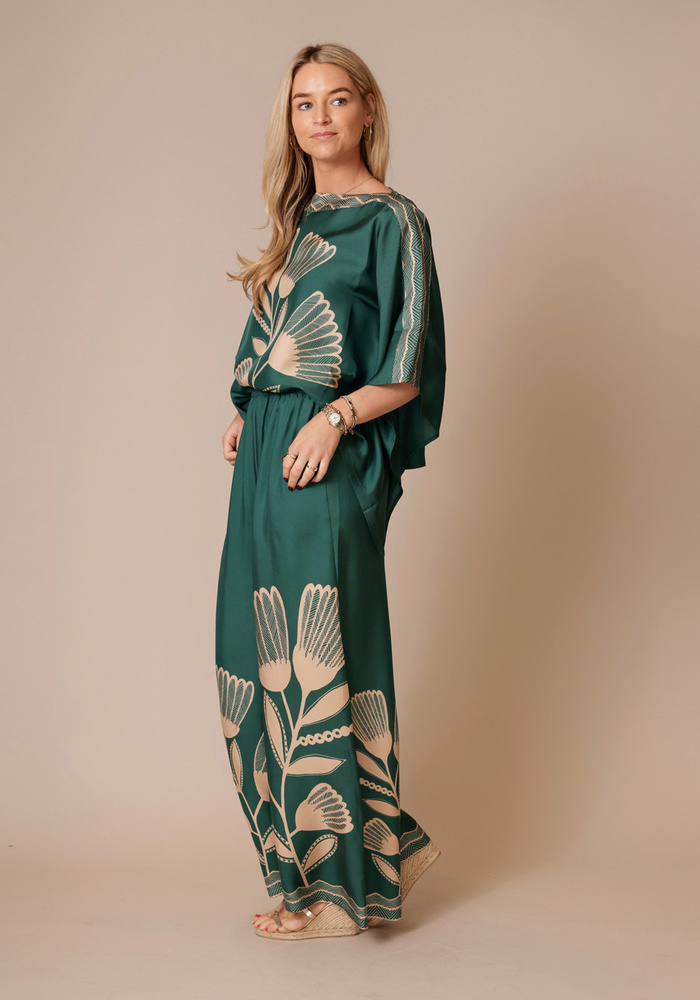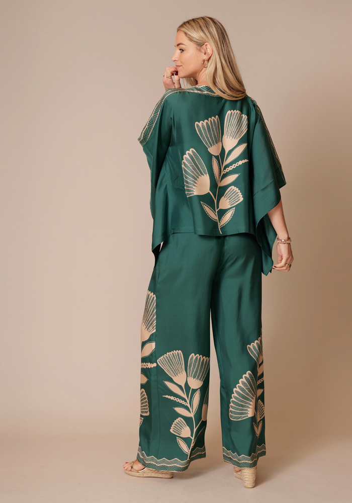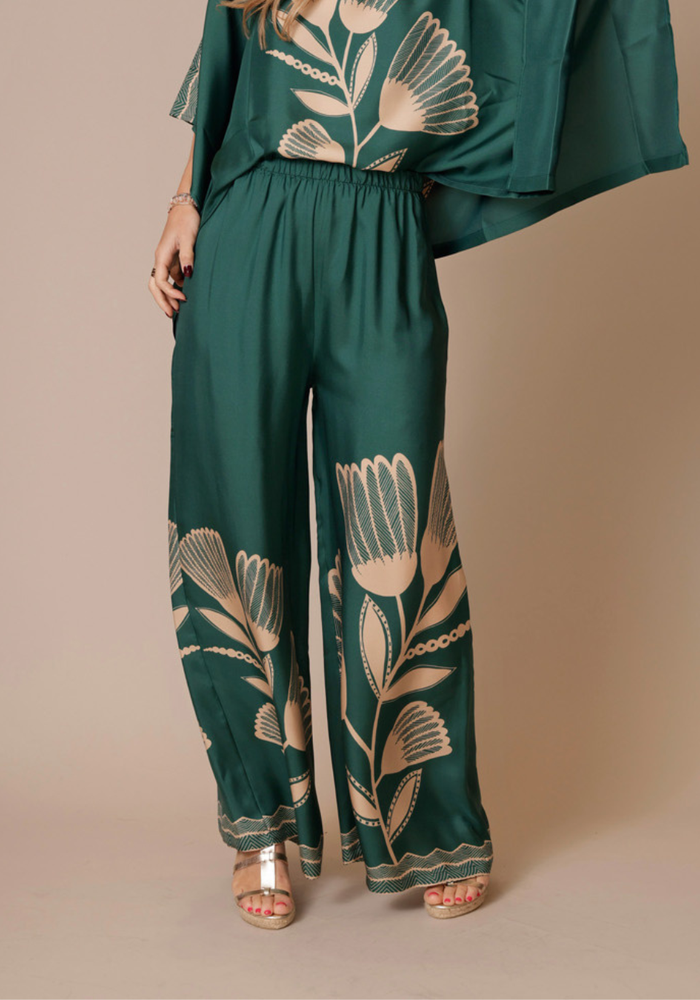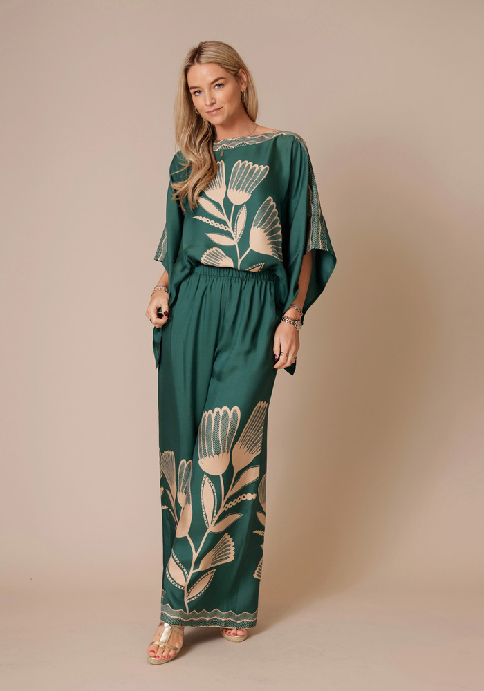 De MARLEY palazzo broek is gemaakt van 100% twillzijde en heeft een opvallende, geplaatste zoom met grote bloemen voor een gedurfde maar harmonieuze uitstraling. Het relaxte model en vloeiende silhouet bieden comfort en elegantie in één. Perfect voor een chique dagje uit of een ontspannen avond, en gemakkelijk te combineren met een ingestopte blouse of een eenvoudige top voor een veelzijdige, stijlvolle look.