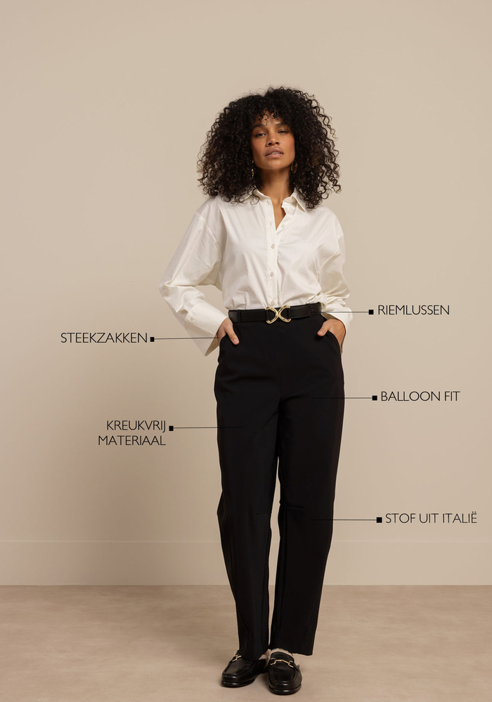 De Marlis bonded barrel trousers van Studio Anneloes geven je outfit in één keer een moderne, krachtige uitstraling. Het ballonmodel creëert een eigentijds silhouet, terwijl de stevige Bonded Travelstof mooi in model blijft. Dankzij de elastische tailleband en de comfortabele stretch is deze broek ideaal voor elke dag.