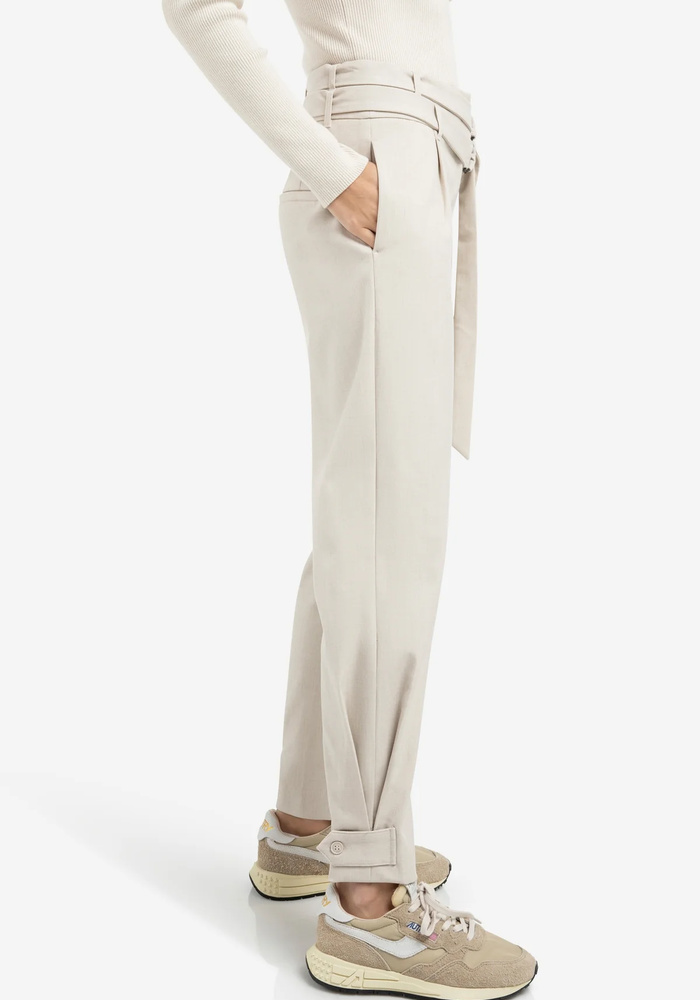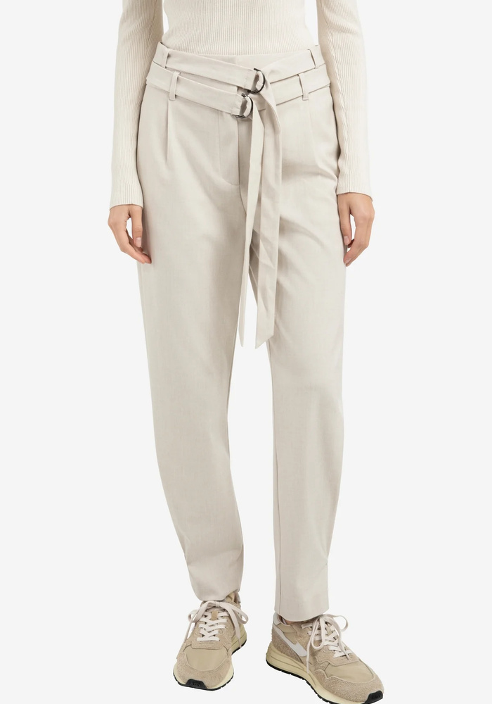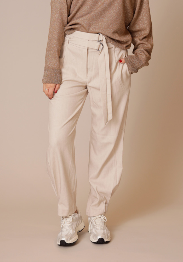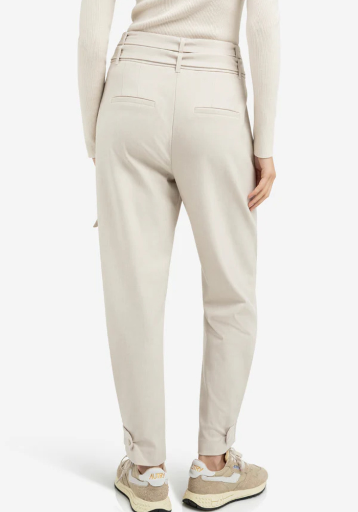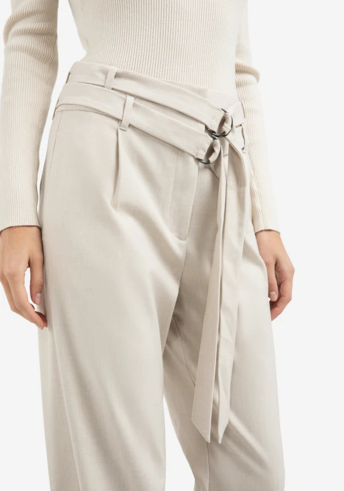 Deze losvallende broek is gemaakt van een geweven stof en heeft een comfortabele pasvorm met een middelhoge taille. De dubbele riem met metalen ringen en de knoopdetails aan de pijpen geven een stijlvol en veelzijdig accent.