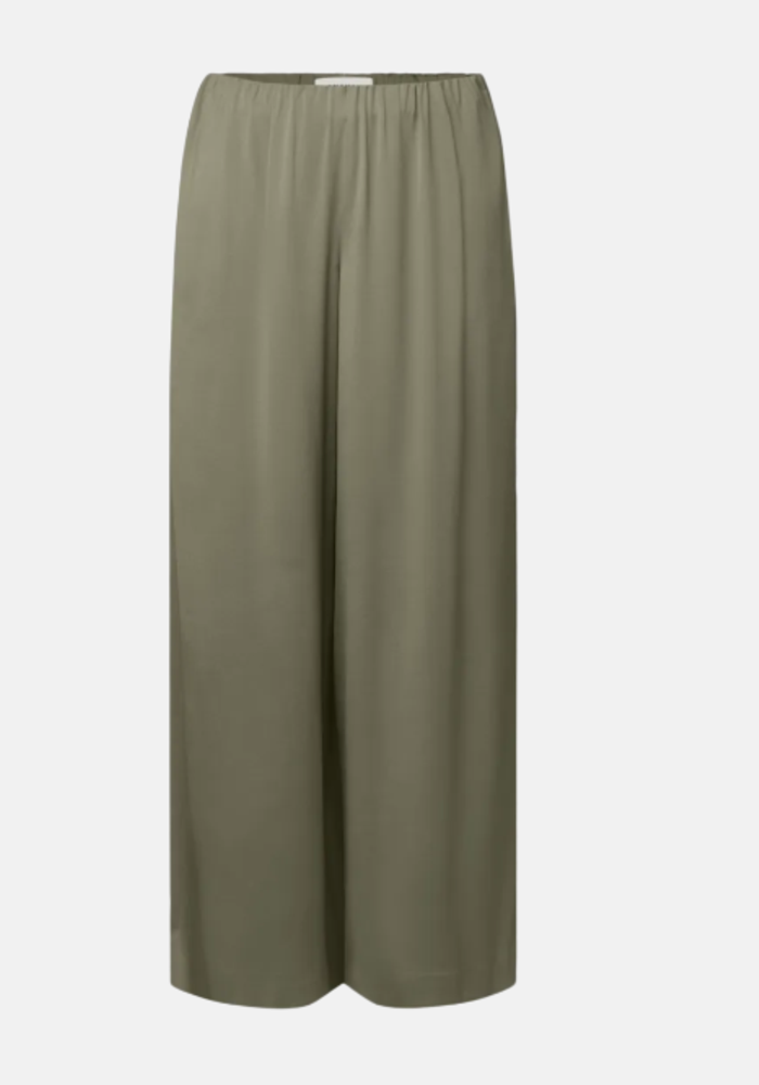 Tweezer is een wijde broek met een elastische tailleband en een comfortabele mid-waist pasvorm. De hoogwaardige, soepelvallende satijn zorgt voor een elegante flow met een subtiele glans.