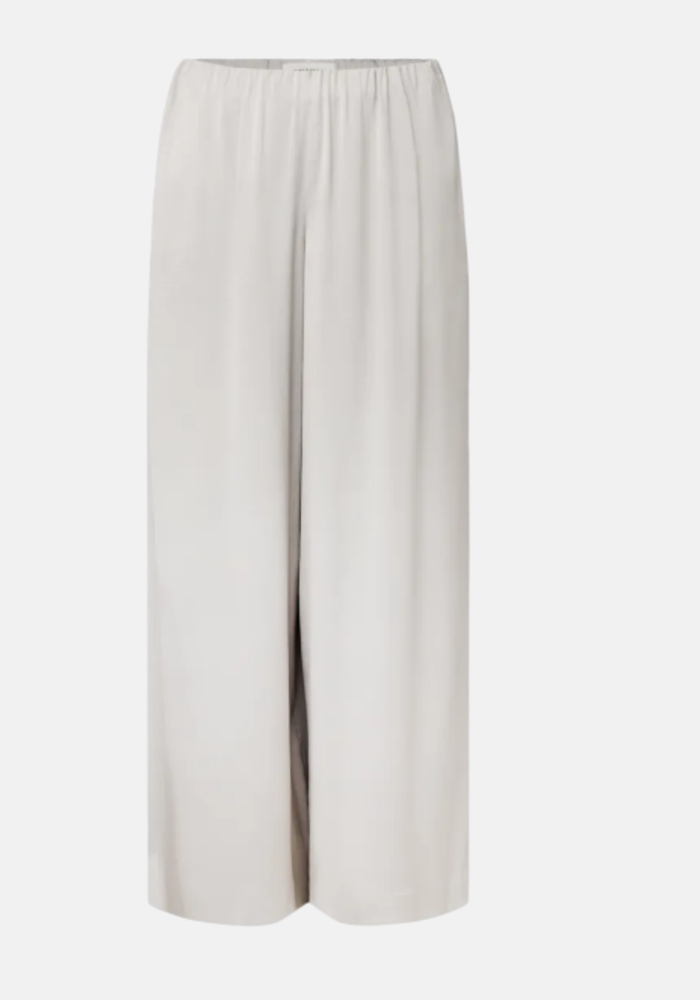 Tweezer is een wijde broek met een elastische tailleband en een comfortabele mid-waist pasvorm. De hoogwaardige, soepelvallende satijn zorgt voor een elegante flow met een subtiele glans.