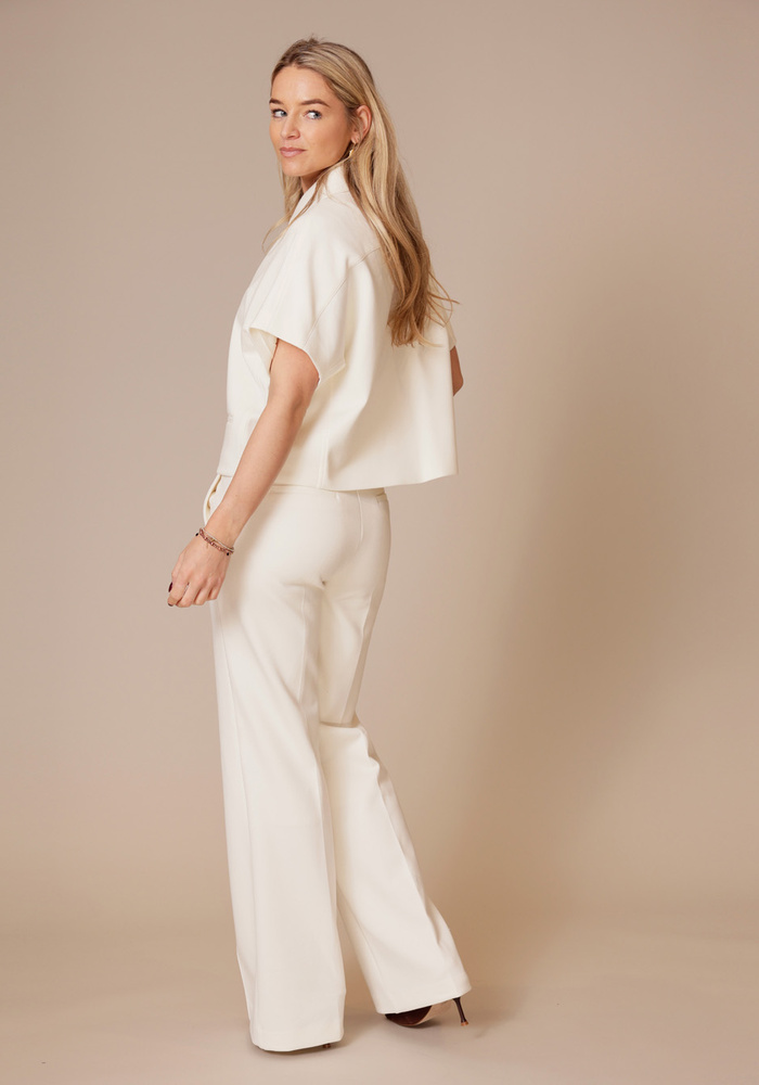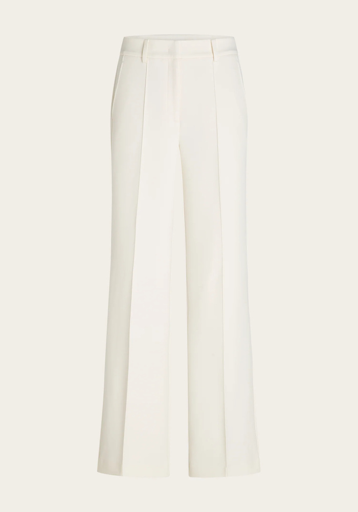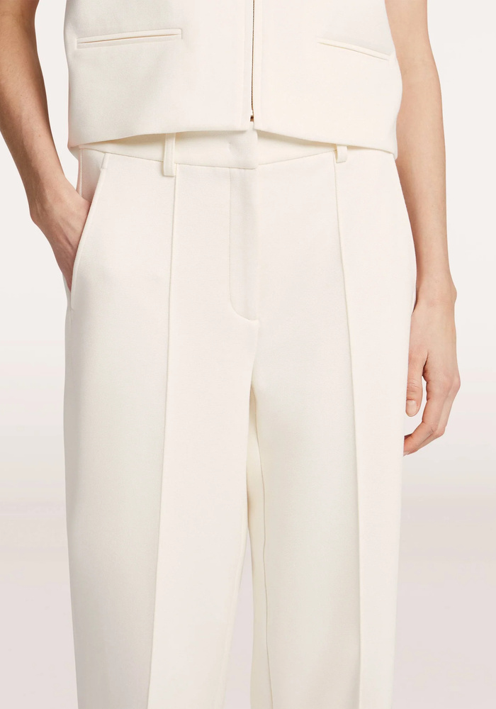 Deze elegante Yuka broek is uitgevoerd in comfortabele piqué jersey en heeft een lange lengte met een verfijnde gestikte vouw voor een verzorgde uitstraling. Voorzien van steekzakken aan de voorkant, twee sier paspelzakken achter, riemlussen, elastiek in de taille aan de achterkant en een haak- en oogsluiting voor een perfecte pasvorm.
