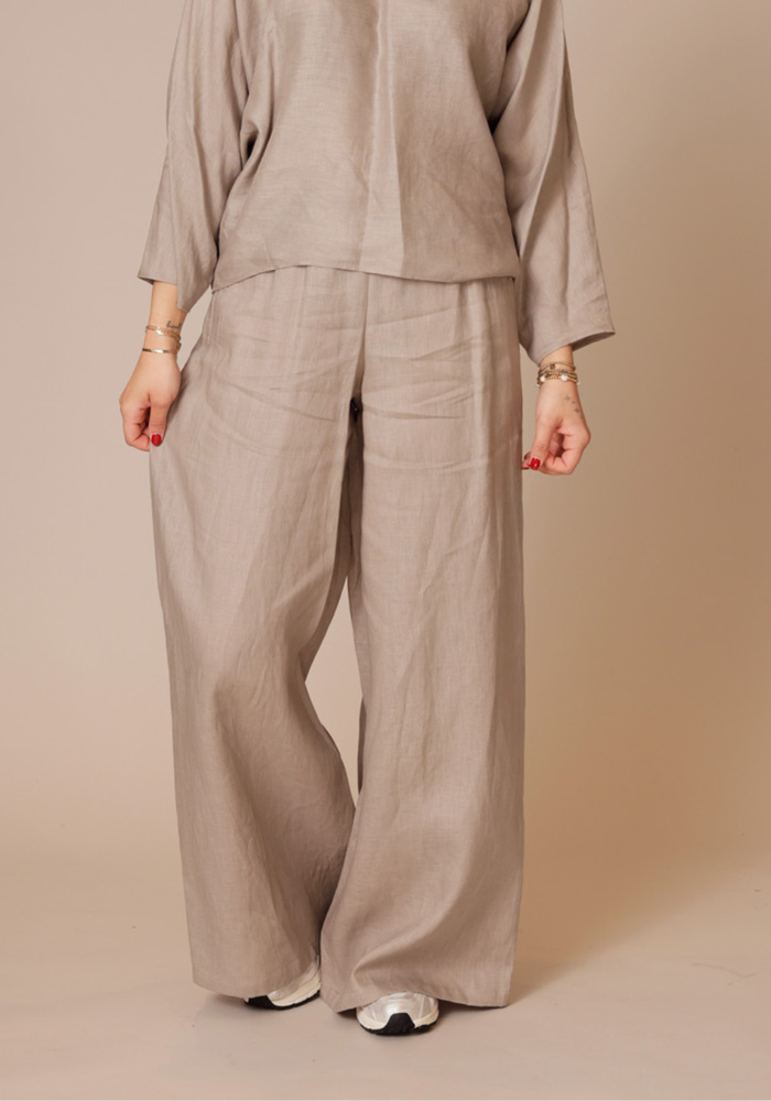 De ceiling broek heeft een wijde, casual pasvorm met een elastische tailleband en wordt laag op de heup gedragen. De zacht glanzende modal zorgt voor een soepele valling en een comfortabel gevoel.