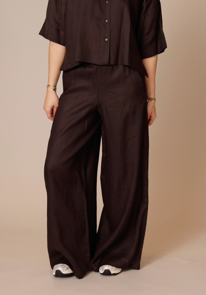 De ceiling broek heeft een wijde, casual pasvorm met een elastische tailleband en wordt laag op de heup gedragen. De zacht glanzende modal zorgt voor een soepele valling en een comfortabel gevoel.