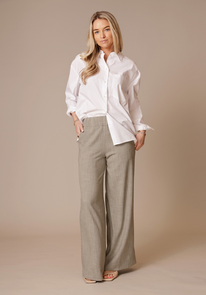 De Soof pants van Bardou is een wijde broek met elastische tailleband. Een heerlijke broek met steekzakken. Op allerlei soorten manieren te combineren, met een blouse en sneaker, of een top en hak.