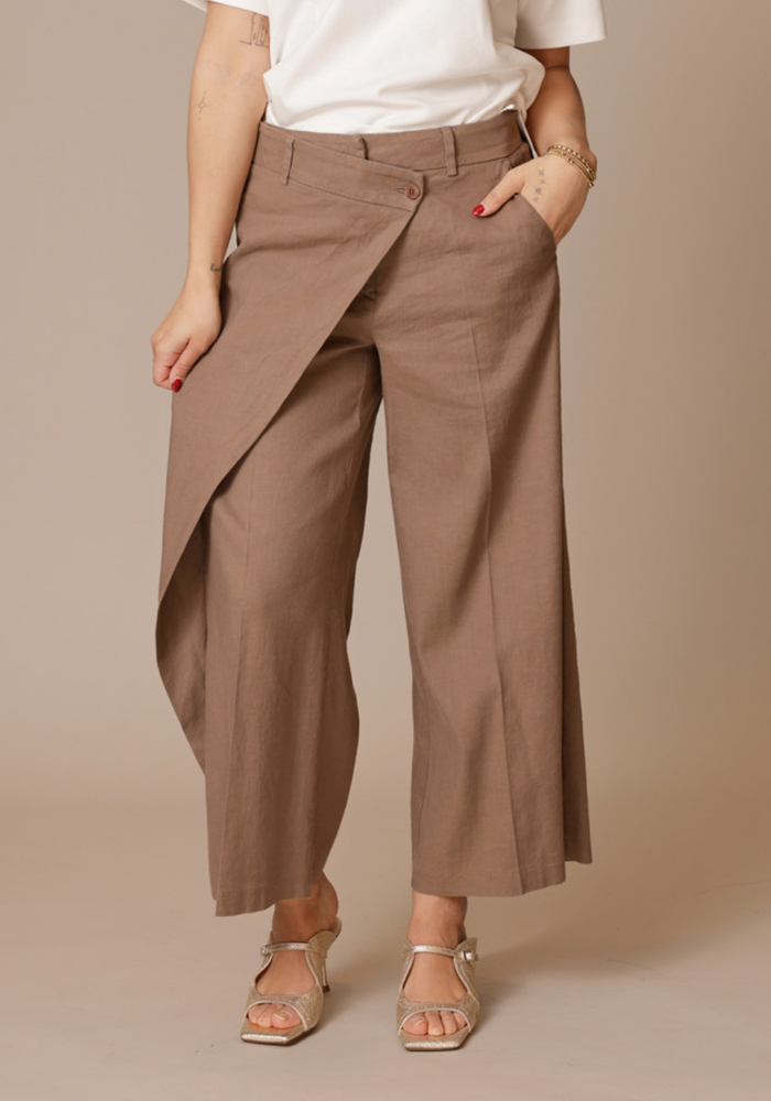 De Anais cropped pants van Cambio is een broek met overslag en een cropped lengte. De broek heeft een knoop -en ritssluiting.