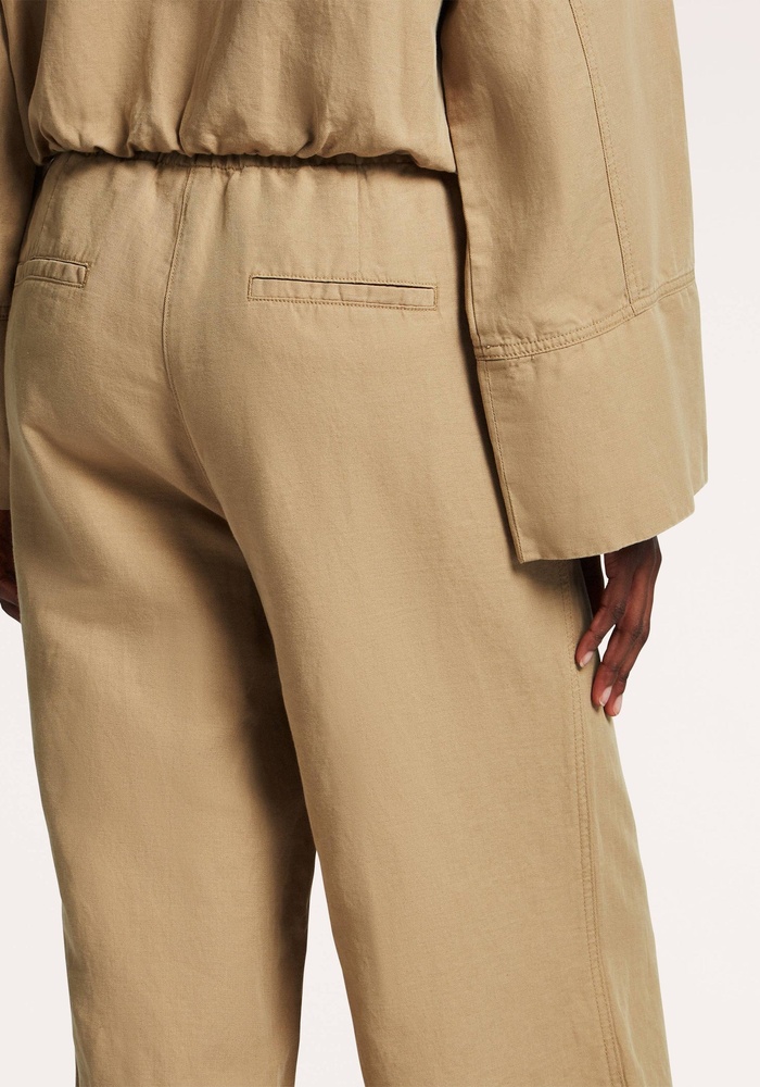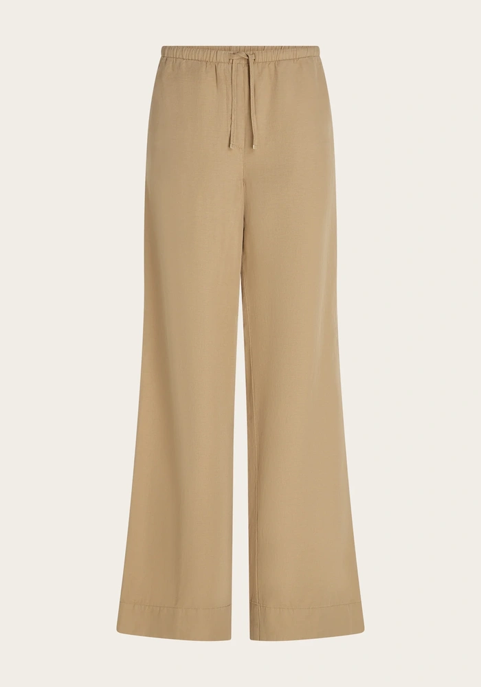 De Chrissy pants van Beaumont zijn vervaardigd van een gewassen linnen- en katoenmix voor een zachte, luchtige feel. Deze palazzo-broek heeft wijde pijpen, een ingezette paspelzak aan de zijkant, een enkele paspelzak achteraan en is afgewerkt met praktische trekkoorden voor een comfortabele pasvorm.