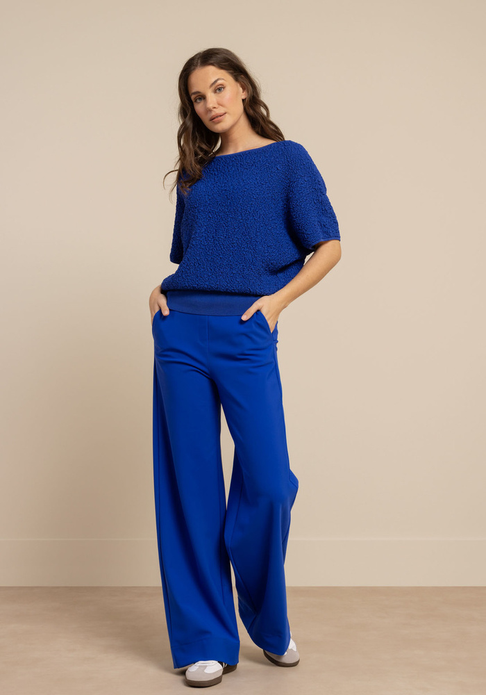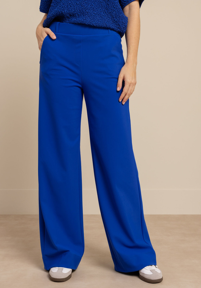 De Lexie bonded trousers van Studio Anneloes is een stijlvolle wide fit broek in de krachtige kleur Electric Blue met een luxe uitstraling. Dankzij de stevige Bonded Travelstof en comfortabele stretch biedt de broek een perfecte pasvorm en optimaal draagcomfort.