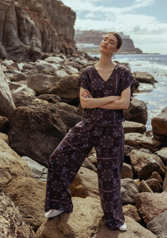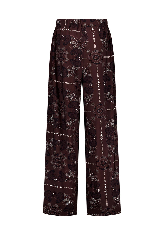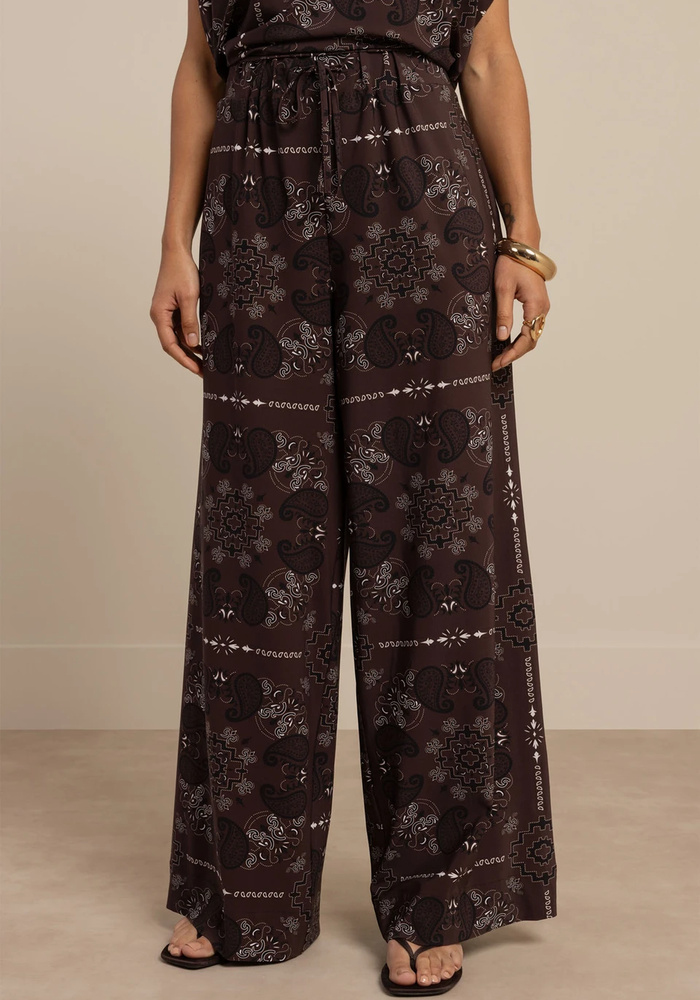 Studio Anneloes Grace Paisley Trousers is een stijlvolle en comfortabele broek met een paisley print in Espresso en Kit. De wide fit, Medium Travelstof en elastische tailleband met drawstring zorgen voor een soepele, flatterende en moderne uitstraling.