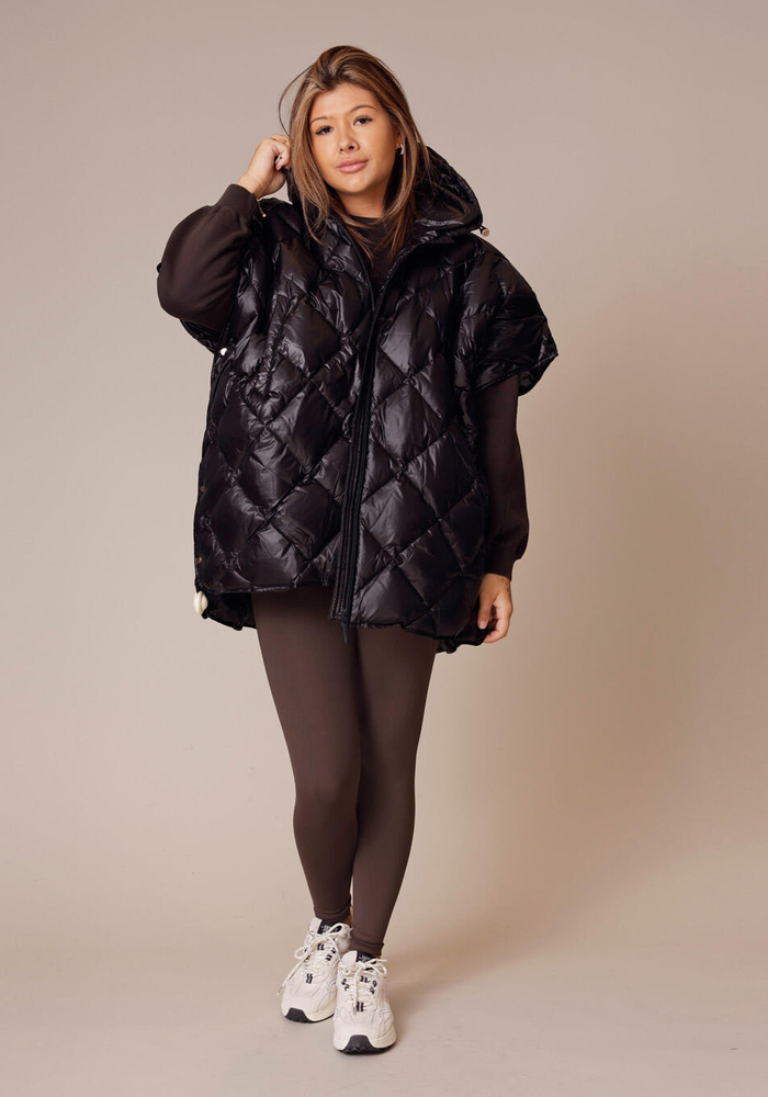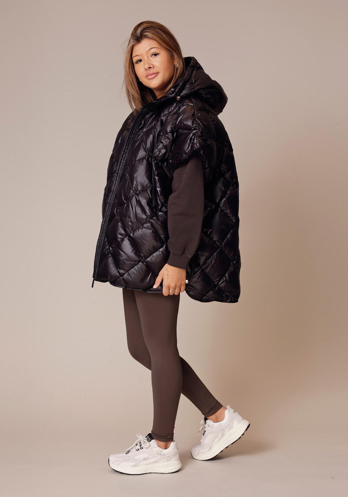 De Carice cape van Deblon is een oversized bodywarmer met capuchon. De cape heeft een ritssluiting aan de voorzijde.