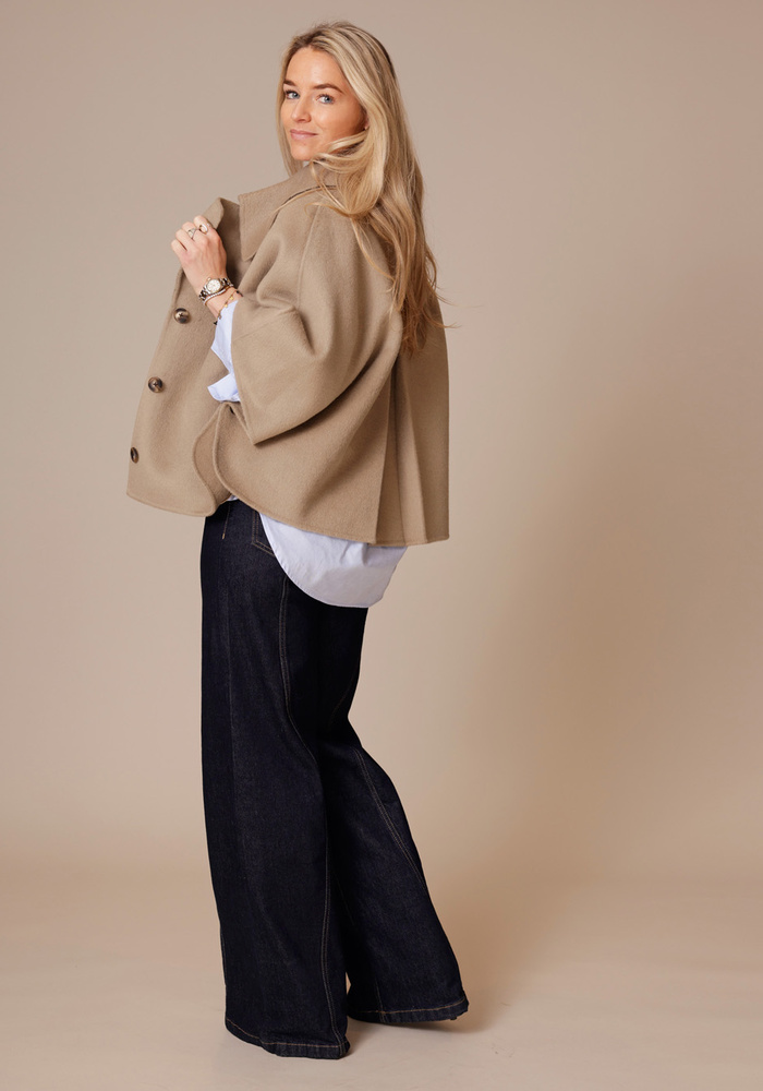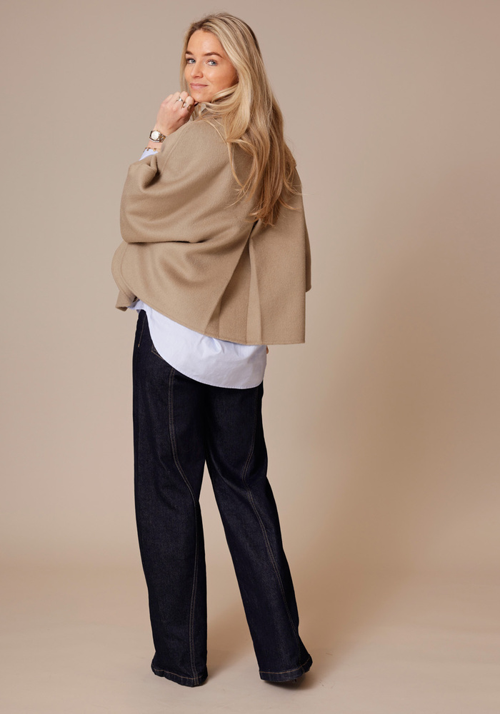 De Lode cape van Alter Ego heeft drie kwart mouwen met mooie knoopjes.