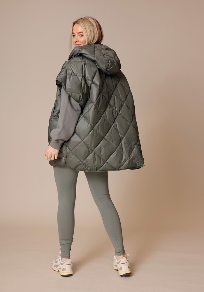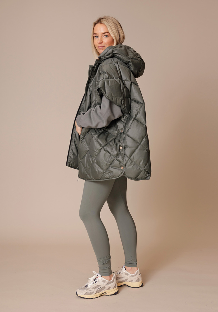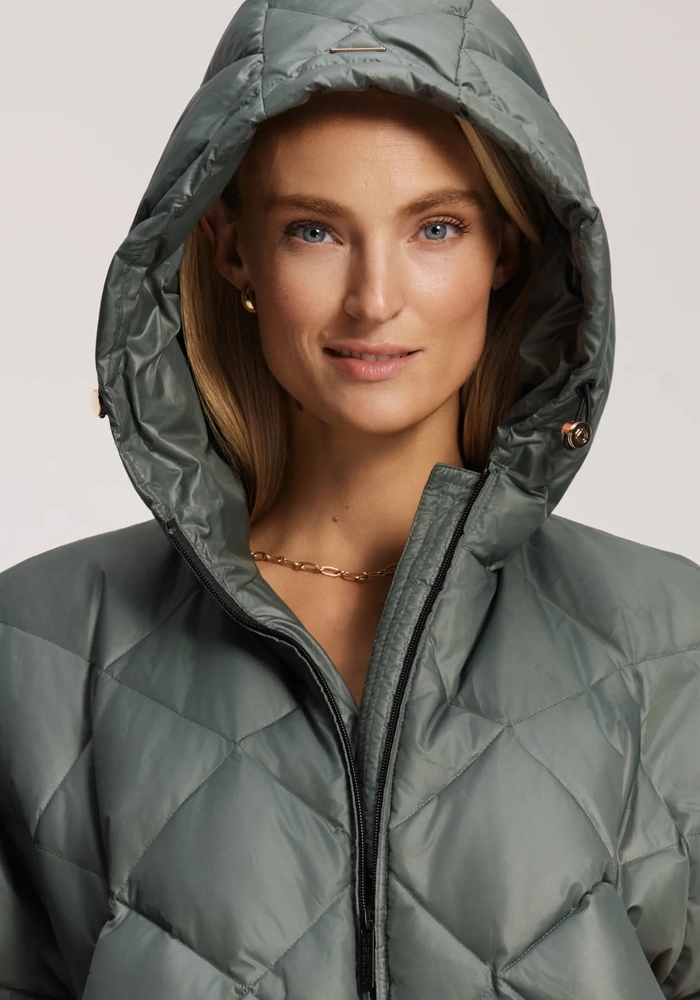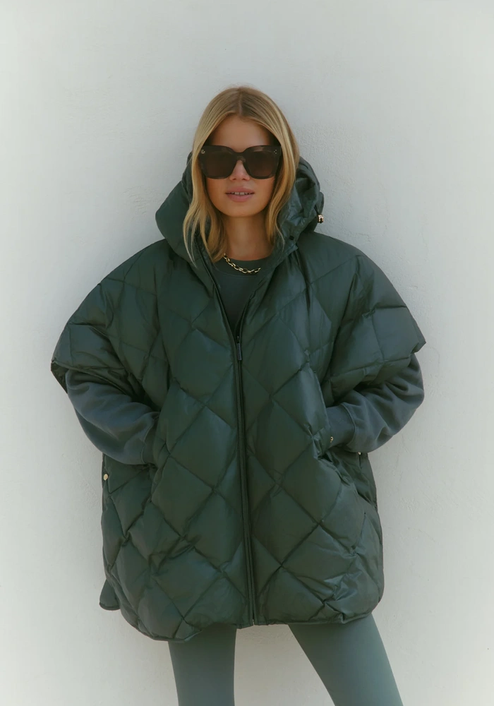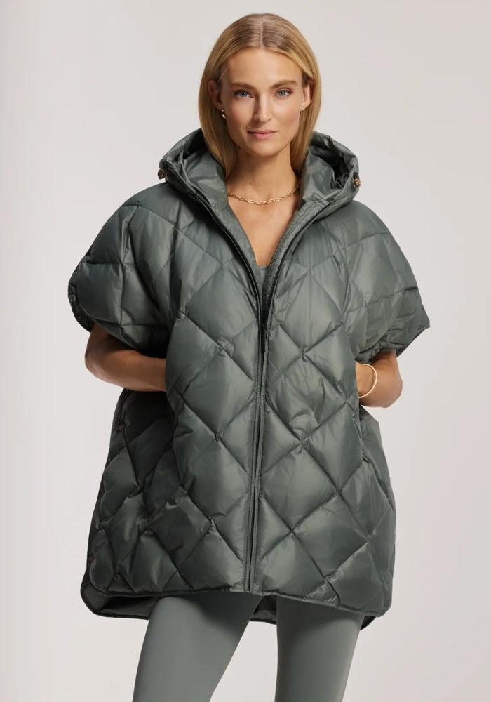 De Carice cape van Deblon is een glanzende, lichtgewicht hightechstof is zowel winddicht als waterafstotend, terwijl de donsvulling je aangenaam warm houdt. Gemaakt van een lichtgewicht crinkle-stof met subtiele glans, heeft de Carice Cape een vaste capuchon met regenklep, een ritssluiting aan de voorkant en schuine ritszakken voor extra functionaliteit. De drukknoopsluiting aan de zijkanten zorgt voor bewegingsvrijheid en vorm, en creëert een verfijnd oversized silhouet dat net over de heup valt.