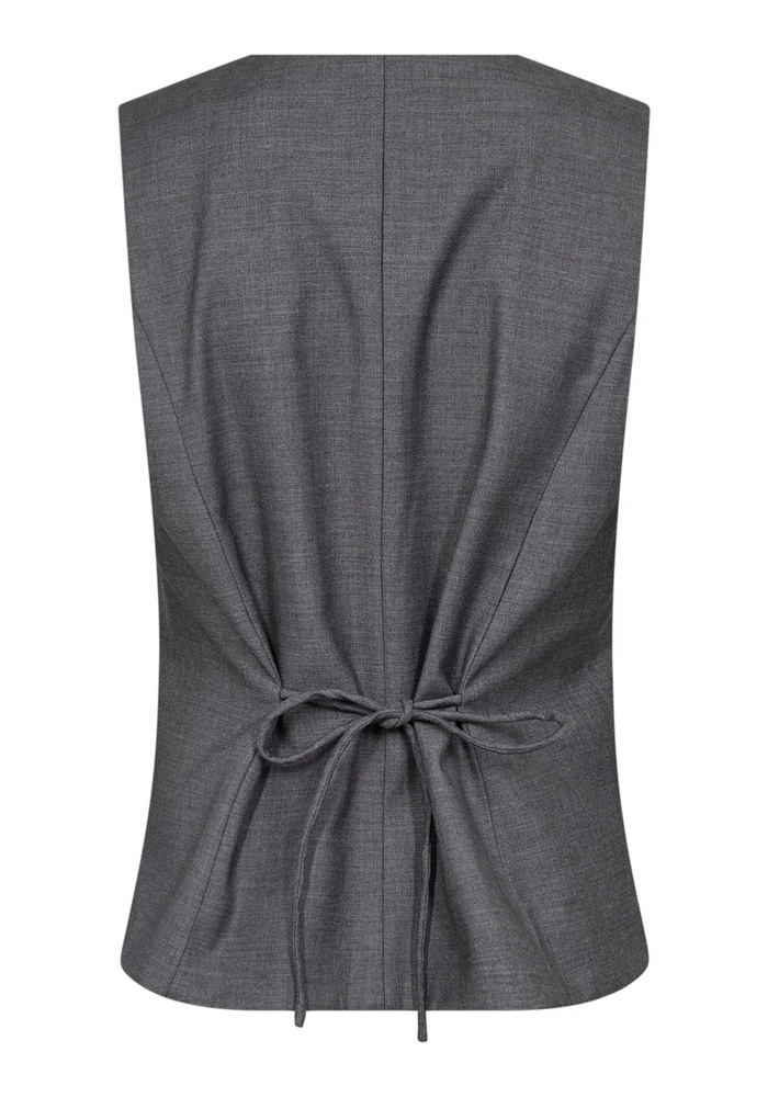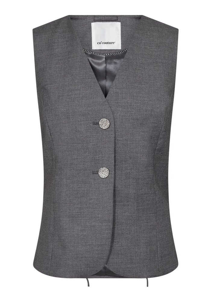 De Liam curve vest van Co'couture is een gilet met zilveren glitter knoopjes.