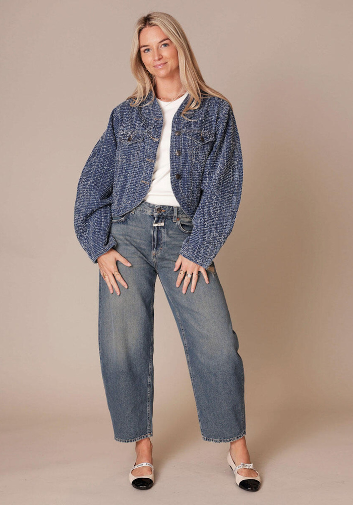 Dit jasje van Rotate is een denim jasje met ronde mouwen. Het jasje heeft lange mouwen en een korte pasvorm.