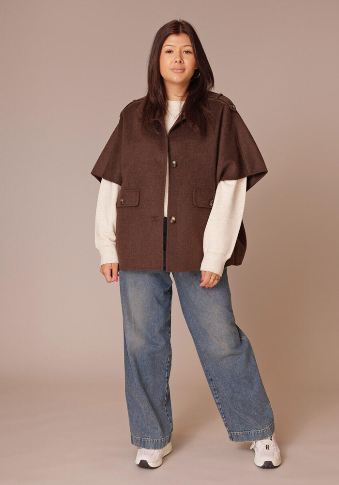De Frenkie coat van Alter Ego heeft een oversized pasvorm en een knoopsluiting aan de voorzijde. Deze mouwloze jas is een echte must-have!