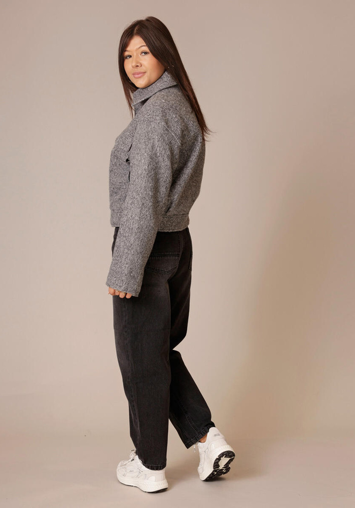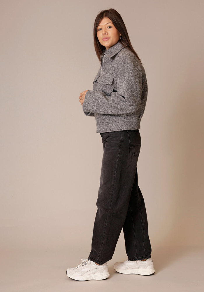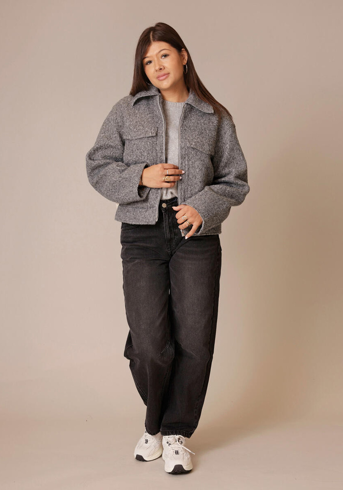 Deze jas van Yaya heeft een korte pasvorm. Het jasje heeft lange mouwen en een ritssluiting aan de voorzijde.