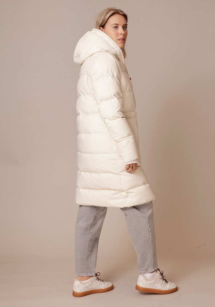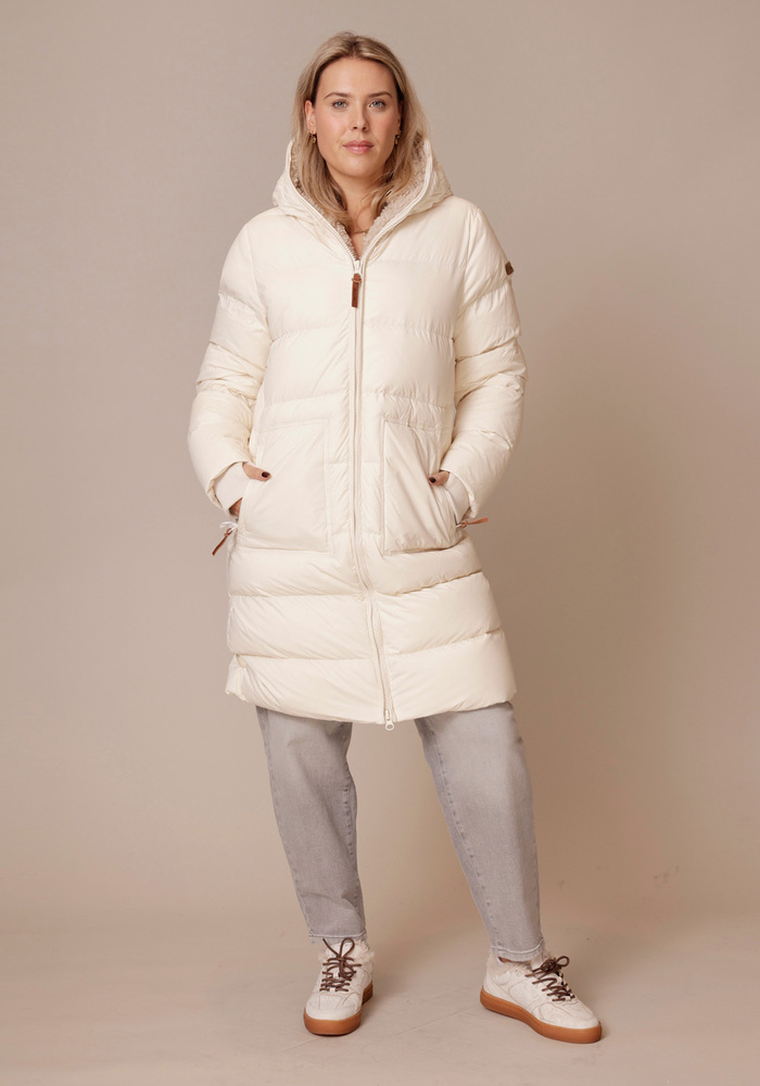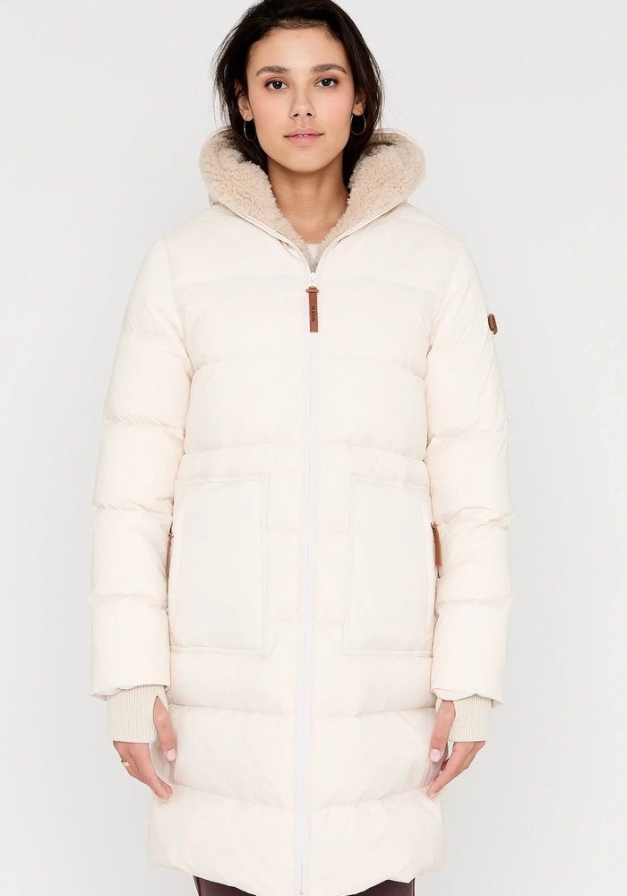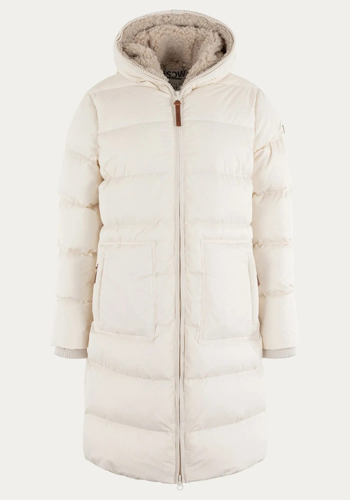 De Oggy jas van Moscow is perfect voor de wintermaanden, gemaakt van polyamide met eendendons en veren voor extra warmte. De jas heeft een rits die tot bovenaan de gevoerde capuchon met teddy sluit voor optimale bescherming tegen de kou. De opgestikte zakken met ritssluiting aan de voorkant bieden praktische opbergruimte, en de elastische boorden aan de mouwen zorgen voor een strakke pasvorm.