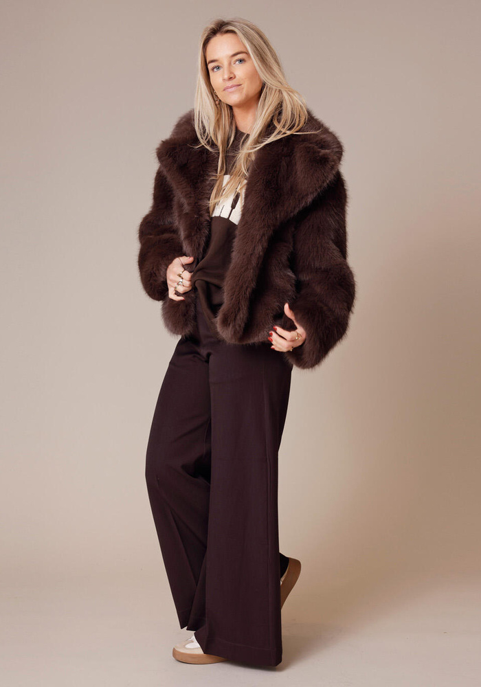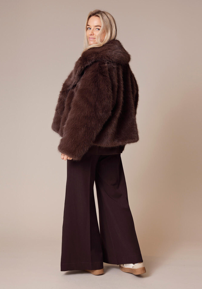 De Novi coat van Alter Ego is een oversized coat met imitatie-bont. De jas heeft een sluiting aan de voorzijde.
