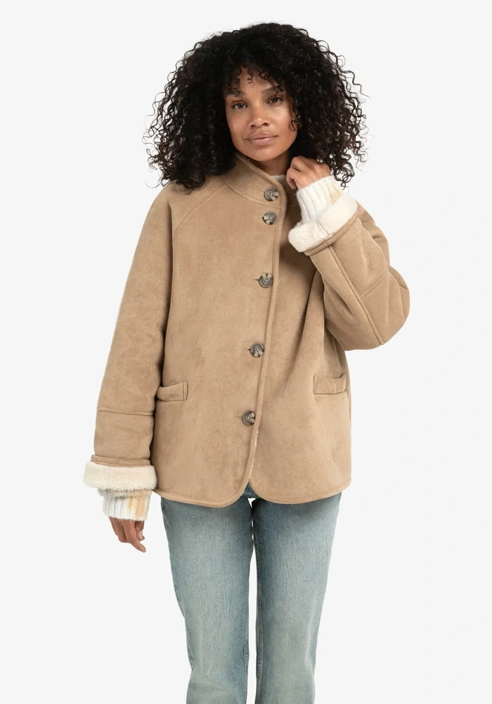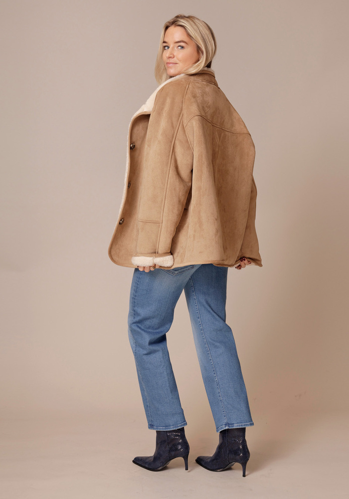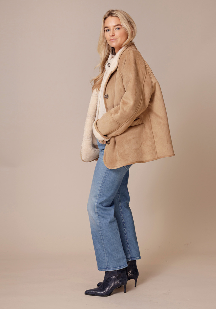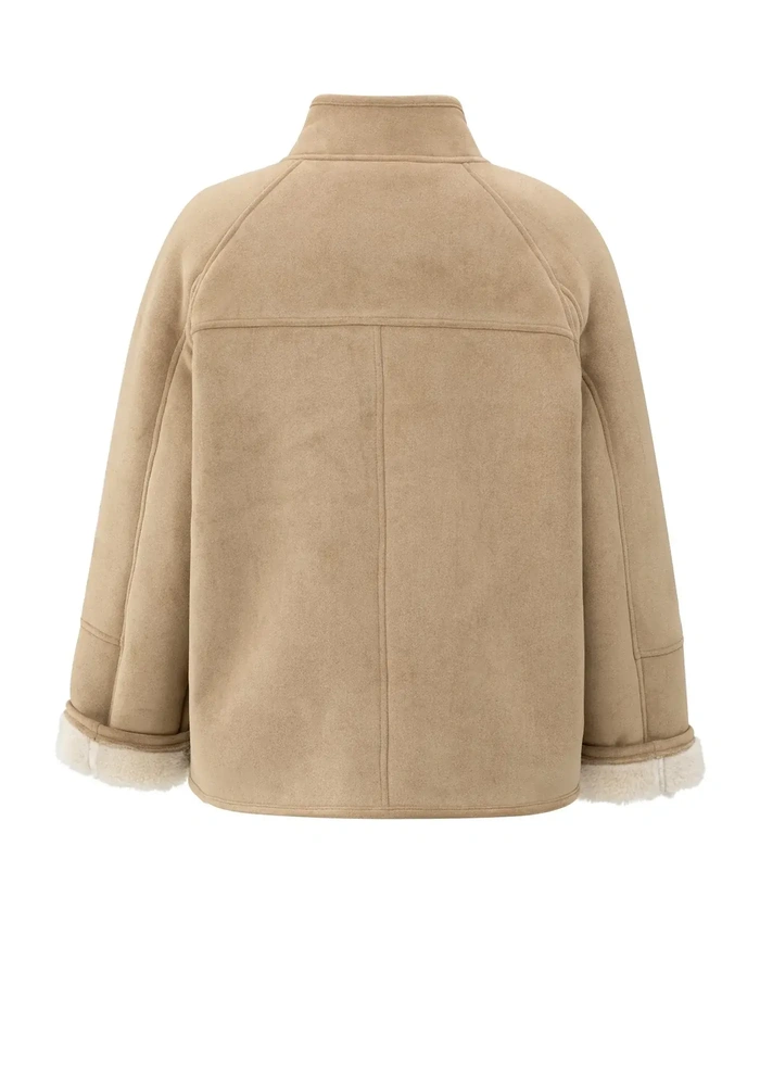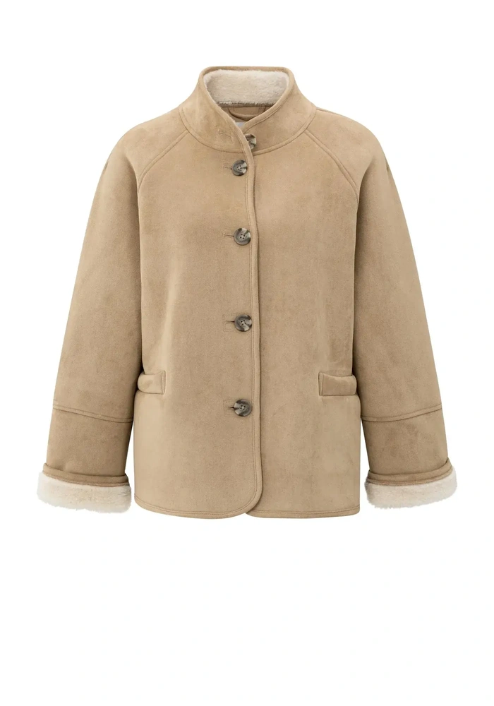 Deze oversized coat van Yaya is een lammycoat met raglan mouwen. De jas heeft een knoopsluiting aan de voorzijde.