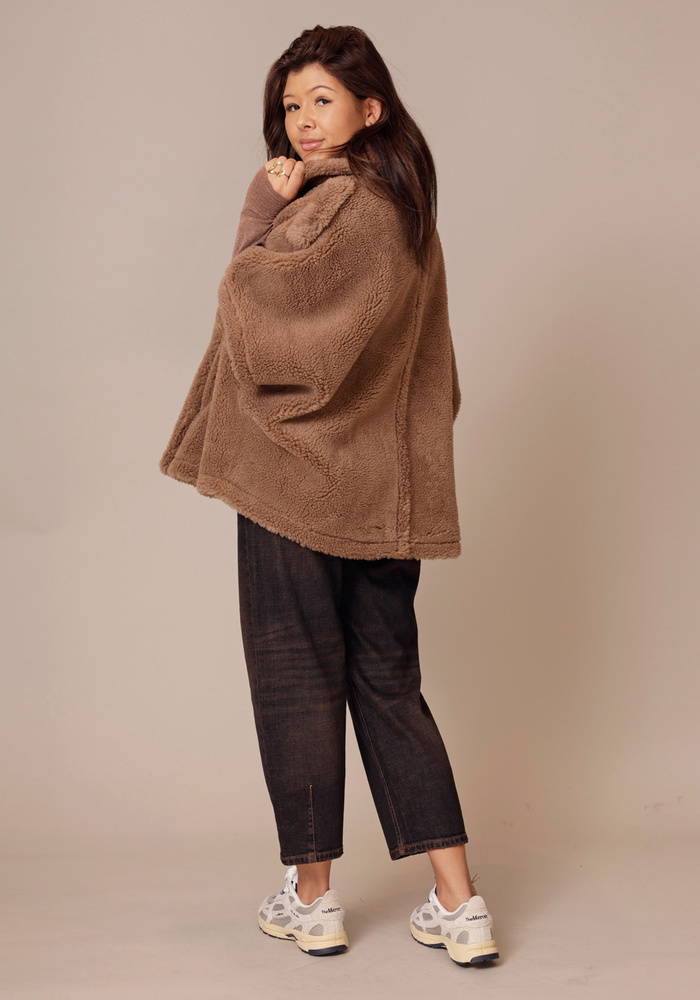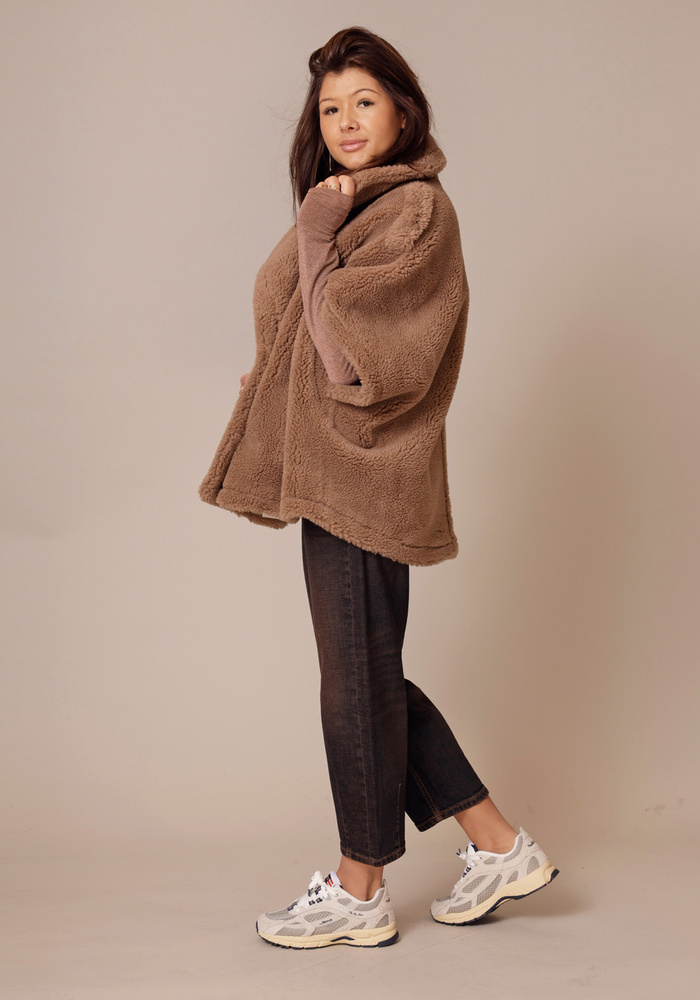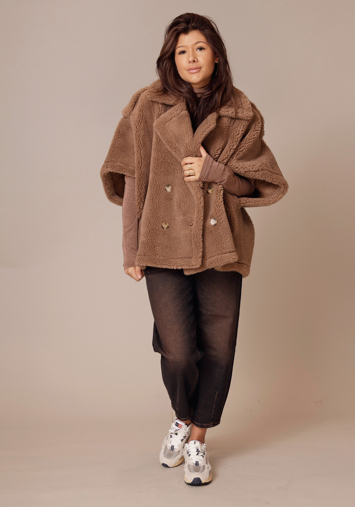 De Jagger coat van Alter Ego is een oversized jas. De jas heeft ¾ mouwen en een knoopsluiting aan de voorzijde.