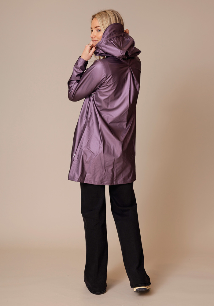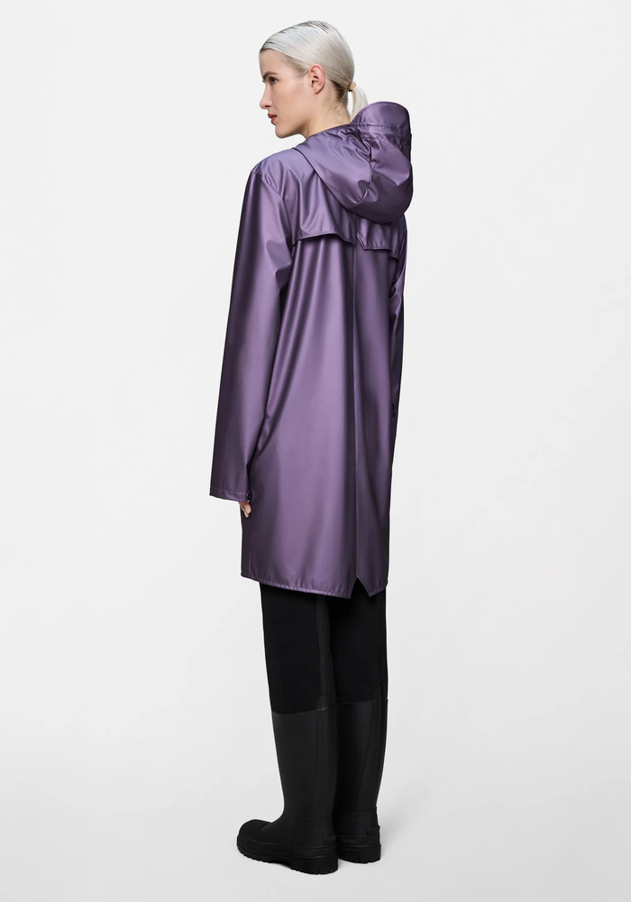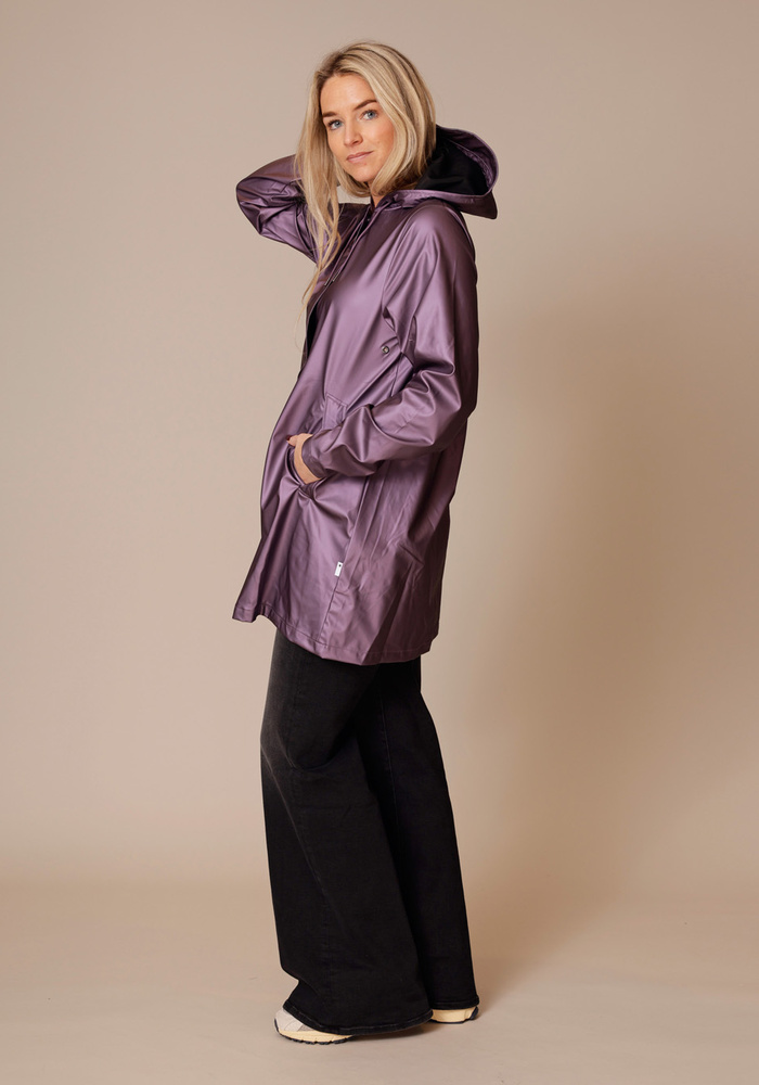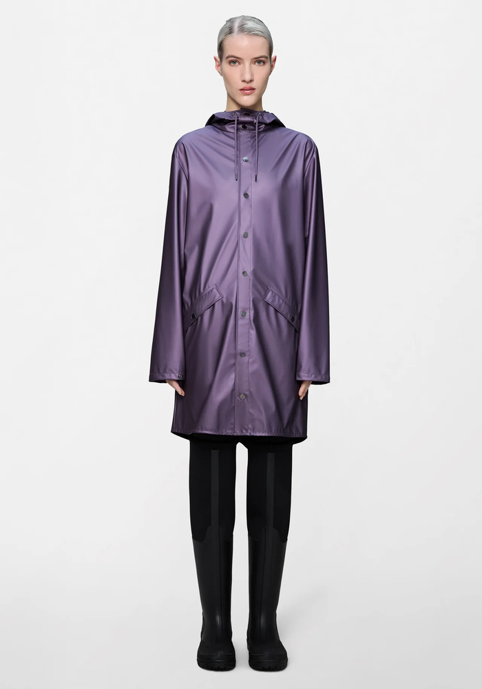 A-Line Longer W Jacket van Rains is een regenjas voor dames die wordt gekenmerkt door zijn A-silhouet en ceintuur die de taille elegant accentueert.