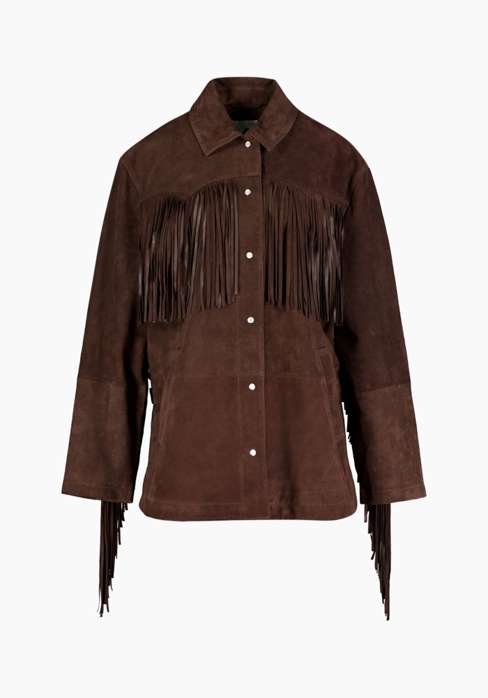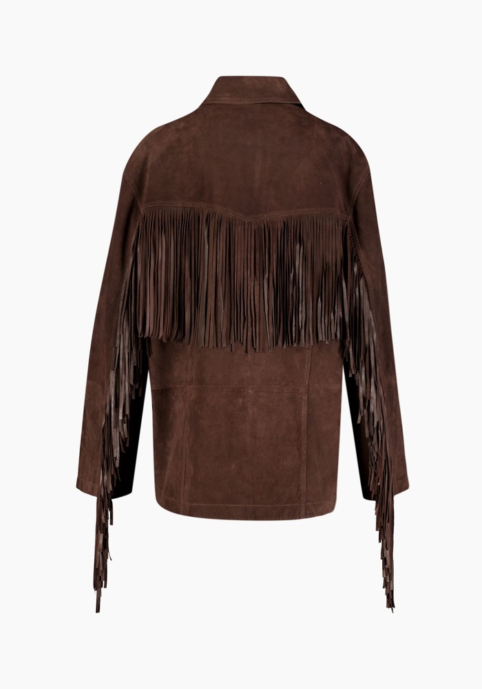De Ginny jacket van Alter Ego is een mooi suede oversized blouse/jas met franjes en drukknoopjes.