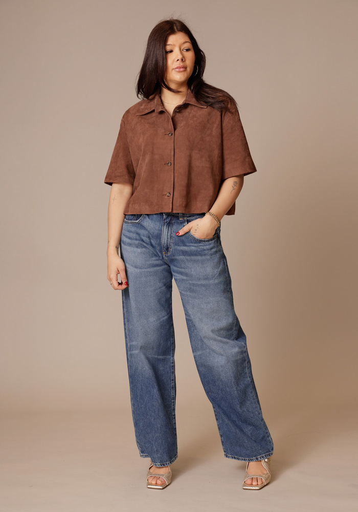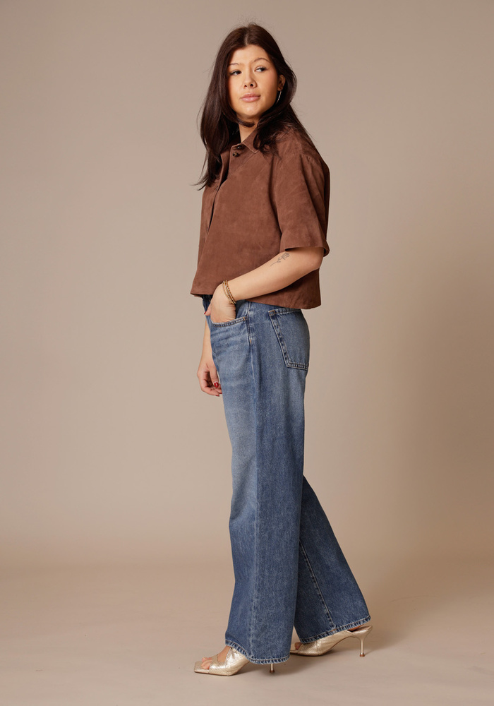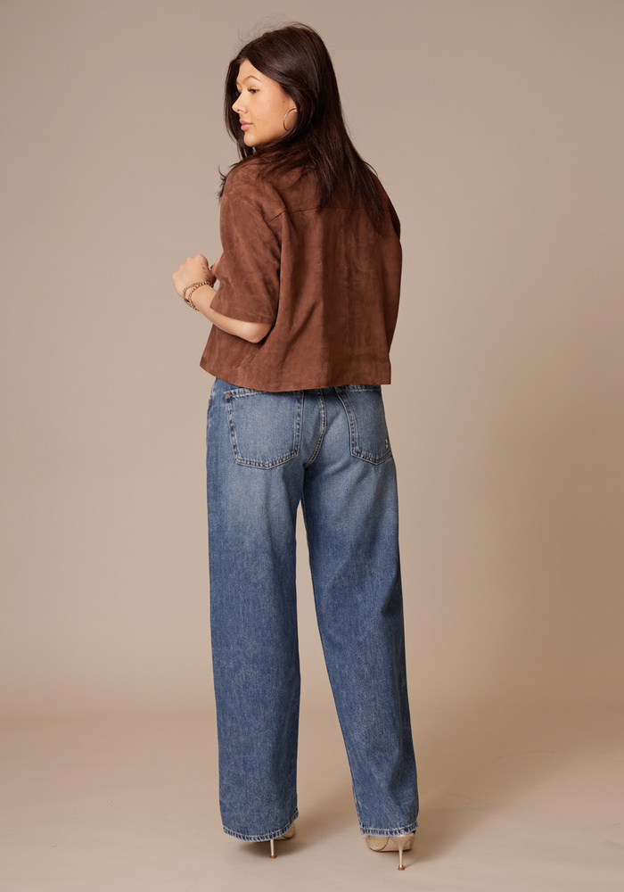 De Eveline suede jacket van Studio Ar is een suede jasje met een korte pasvorm. Het jasje heeft korte mouwen en een knoopsluiting.