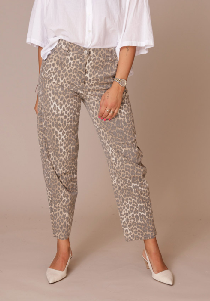 De Eve jeans van Cambio is een opvallende broek die is uitgevoerd in een stijlvolle luipaardprint en combineert moeiteloos comfort met een trendy uitstraling. De middelhoge taille en rechte pijpen zorgen voor een flatterend silhouet, terwijl de stretchstof een comfortabele pasvorm garandeert. Perfect te combineren met een basic top en sneakers voor een casual look, of met hakken en een blazer voor een modieuze avondoutfit.