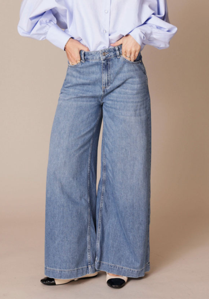 De Musc jeans van Ba&sh is een wijdvallende jeans. De broek heeft twee steekzakken aan de voorzijde en heeft een knoop -en ritssluiting.