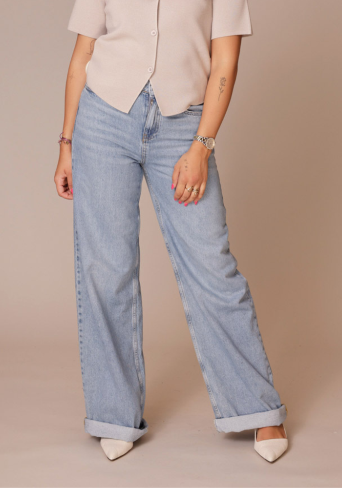 Deze wide jeans van Yaya is een losvallende jeans met wijde pijpen. De jeans heeft een knoop -en ritssluiting.