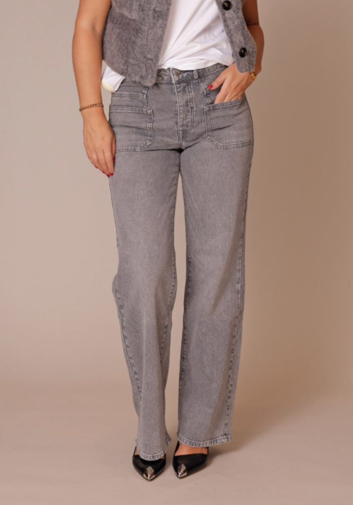 Deze wide straight leg jeans van Summum is high waist en heeft veel stretch.