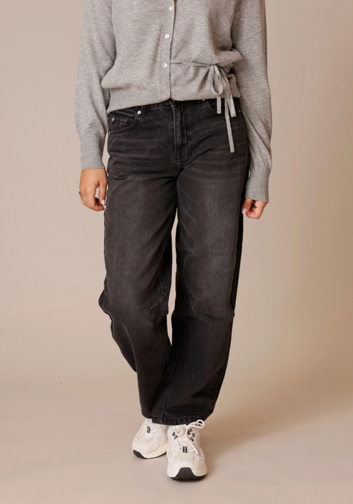 Deze jeans van Summum is uitgevoerd in 100% katoendenim met een donkere wassing. De broek heeft een relaxte fit op de heupen en een cocoonvormige pijp op enkellengte.