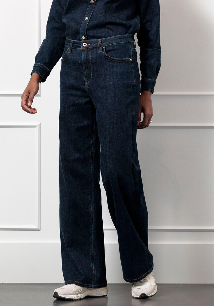 De Lexie denim trousers van Studio Anneloes is een stijlvolle jeans met een relaxte wide fit die comfort en elegantie moeiteloos combineert. Dankzij de zachte denim en flatterende pasvorm is dit de ideale broek voor elke dag. Met de klassieke details en de tijdloze denim blue kleur draag je hem zowel casual als chic.