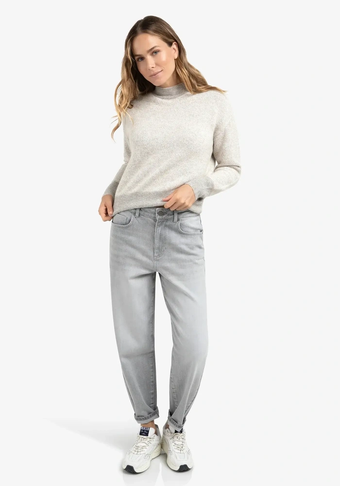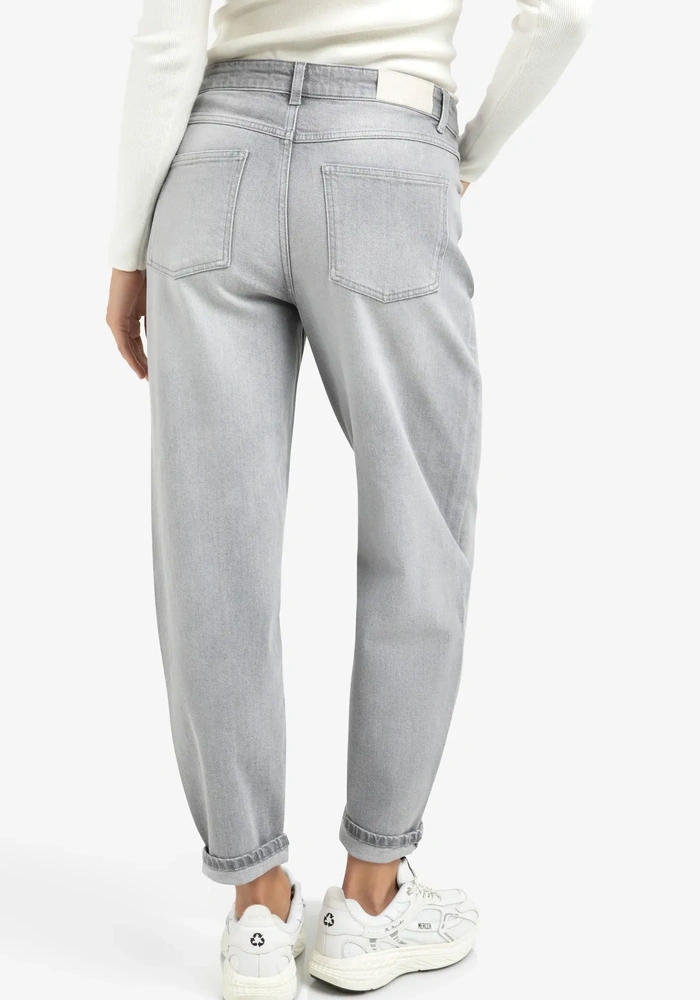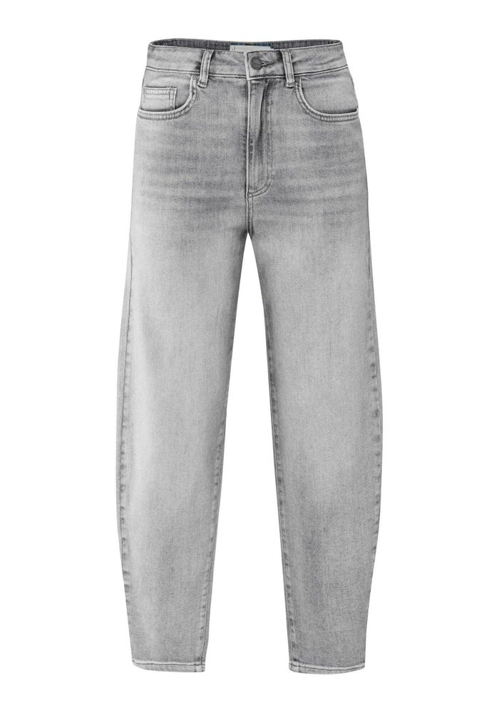 De high waist jeans van Yaya is een barrel fit jeans met een hoge taille. De jeans heeft een knoop -en ritssluiting.