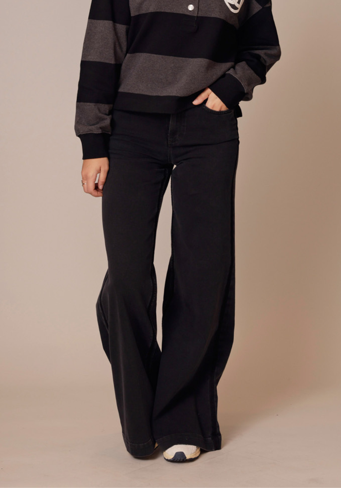 De Glow-up jeans van Closed heeft een hoge taille en uitlopende pijpen. De jeans heeft een knoop -en ritssluiting.