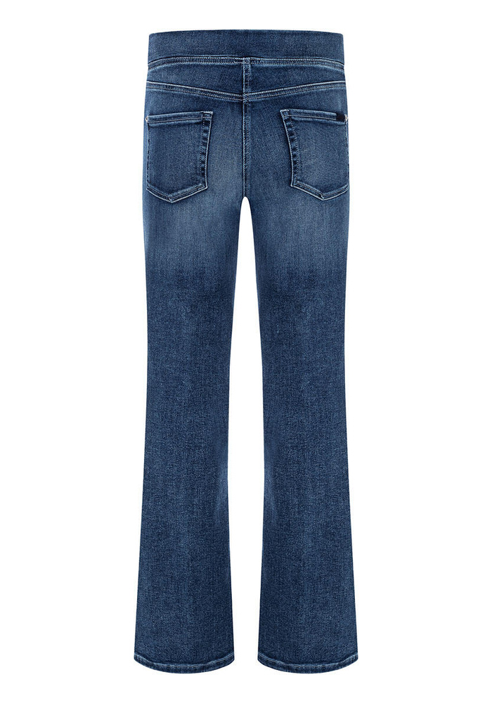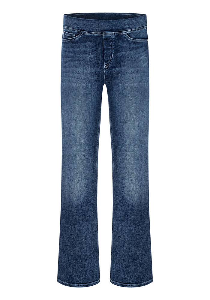 De Philia flared jeans van Cambio heeft een comfortabele pasvorm. De broek heeft een elastische taille en loopt wijd uit.