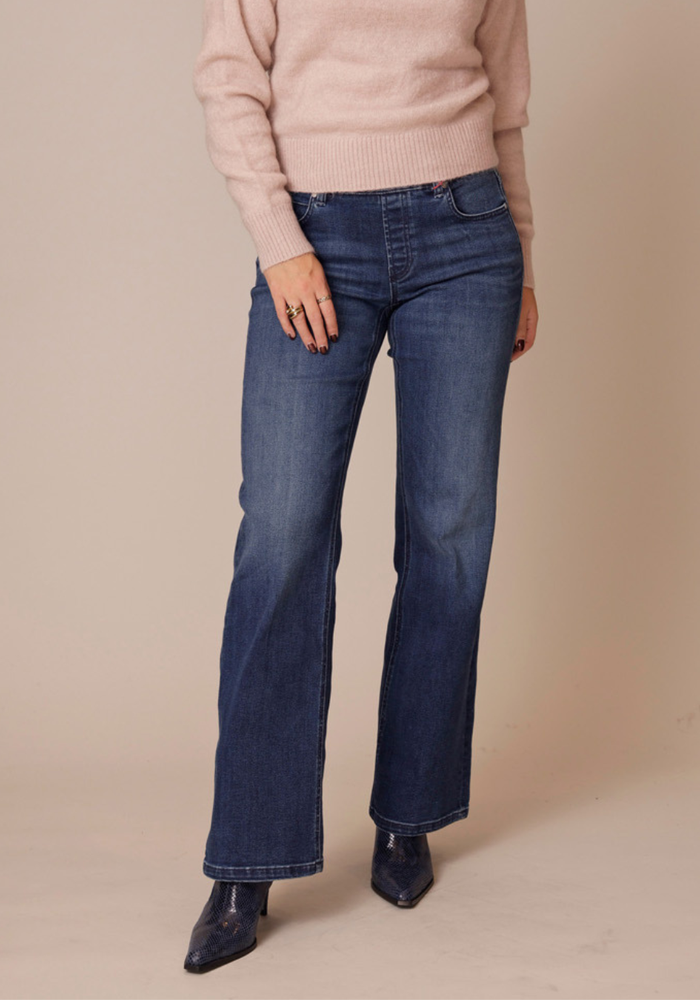 De Tess jogger van Cambio heeft een relaxte pasvorm met elastische tailleband. De broek loopt wijd uit.