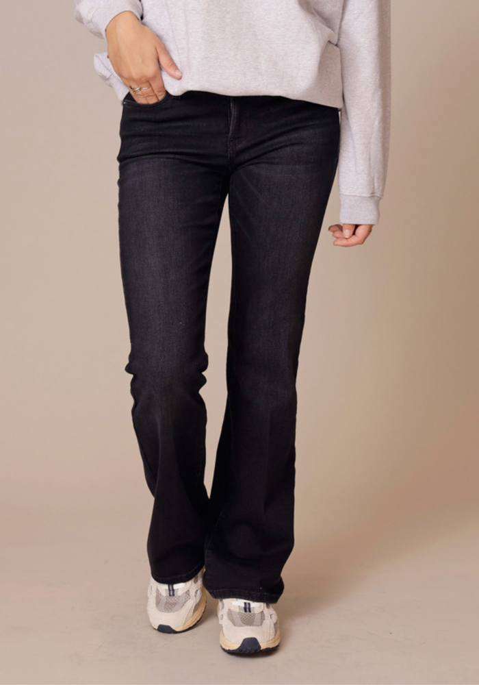 De Paris flared van Cambio heeft een middelhoge taille met uitlopende pasvorm.