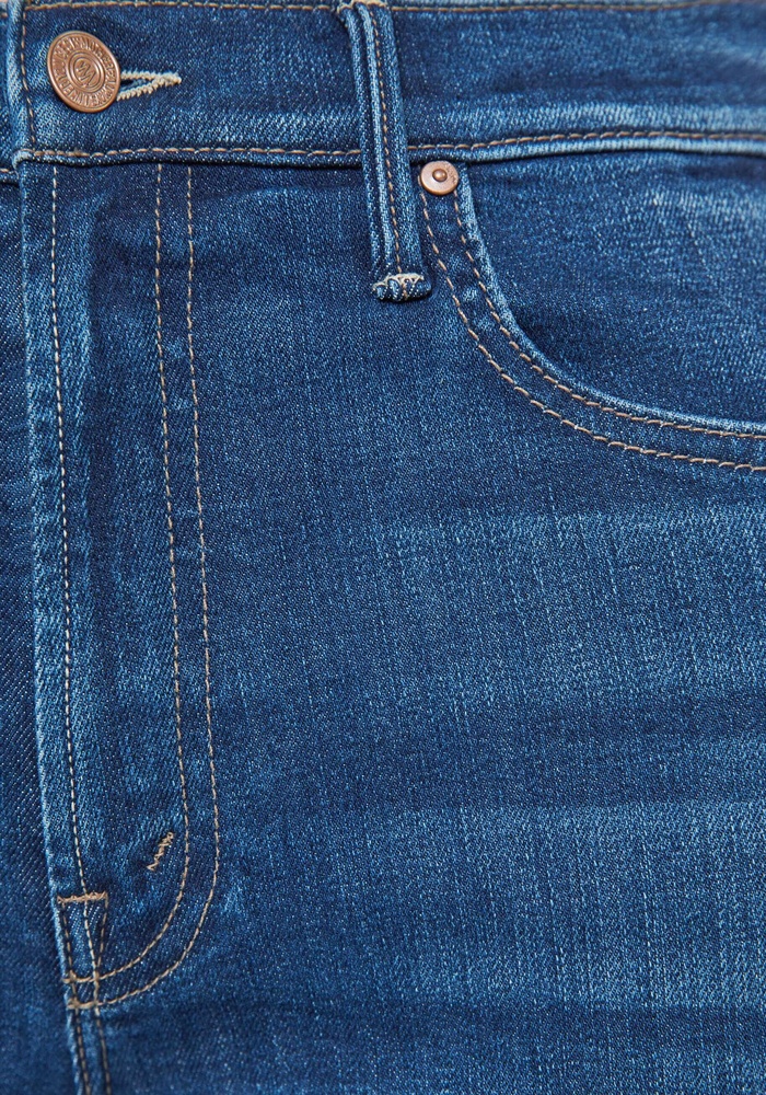 De The kick it jeans van Mother heeft een hoge taille en rechte pijpen heeft een ritssluiting, een binnenbeenlengte van 81 cm en een strakke zoom. Gemaakt van een duurzame mix van gerecycled stretchdenim. Troublemaker is een middenblauwe wassing met subtiele slijtage en vervaging bij de knieën.
