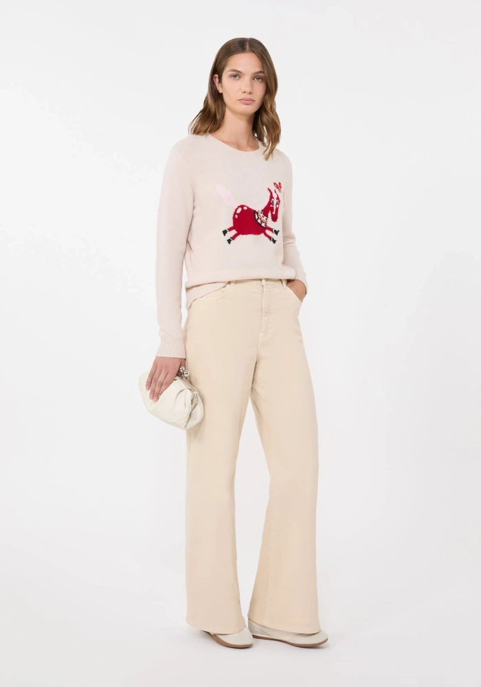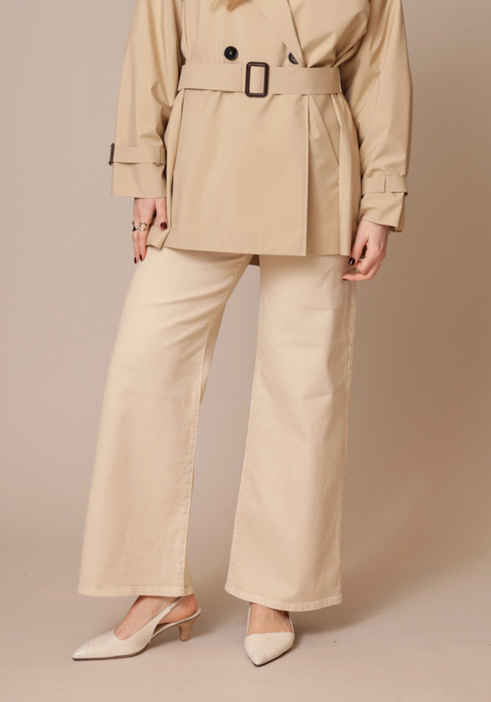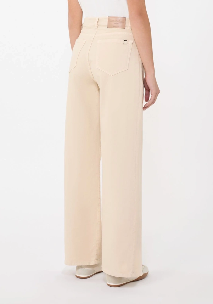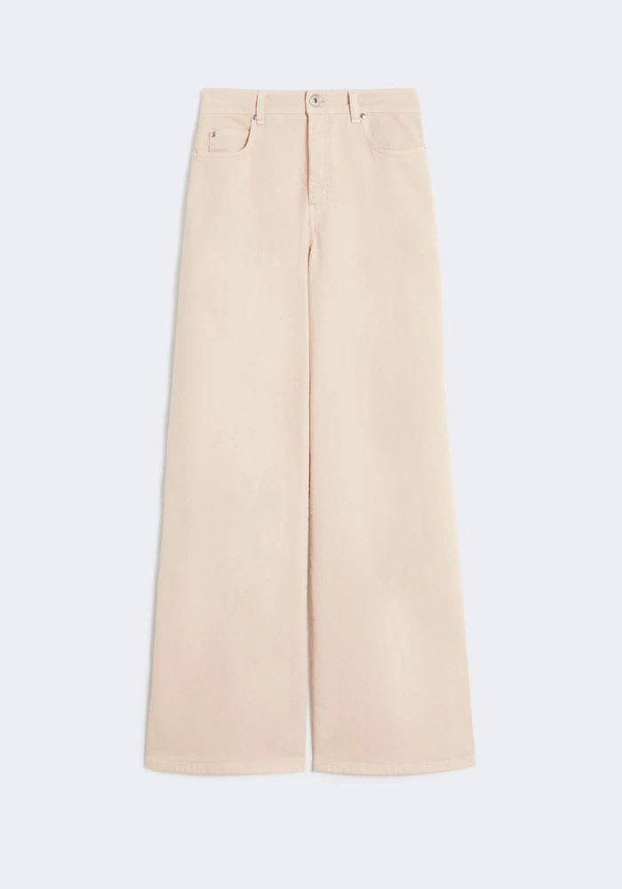 De Medina broek van Weekend MaxMara is een broek in-kleding geverfde stretchkatoenen keperstof, uitgevoerd in een wide fit met een rechte pijp. Het model heeft een vijfzakkenconstructie met opgestikte achterzakken, metalen rivetten en riemlussen in de taille. De sluiting bestaat uit een verborgen ritssluiting met een metalen knoop.