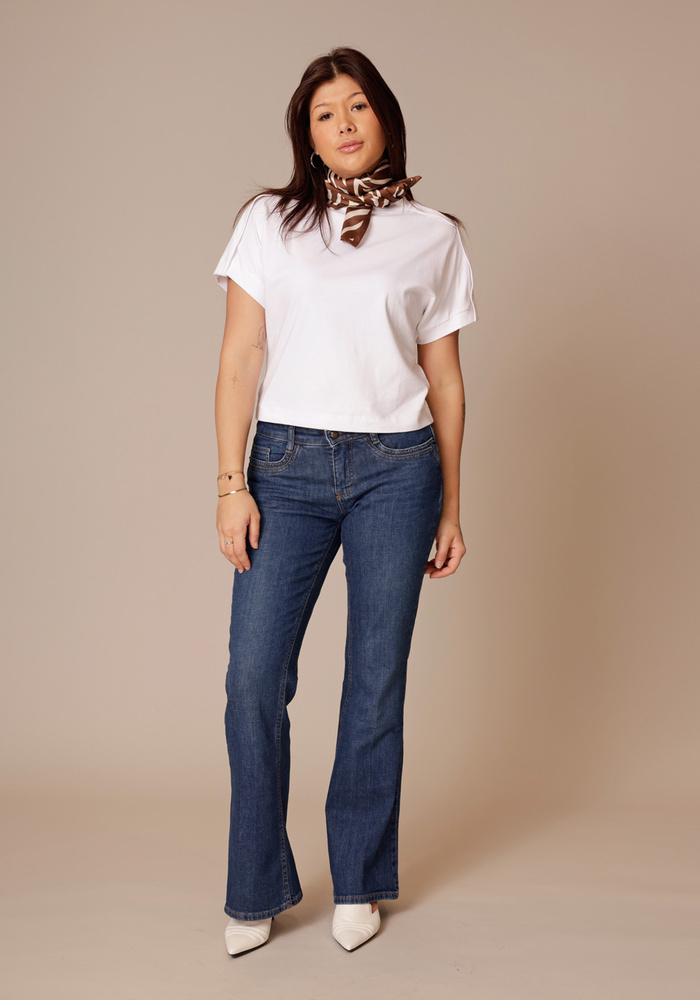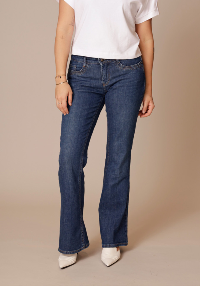 De Detroit jeans van Mac is een jeans met een uitlopende pijp. De jeans heeft een knoop -en ritssluiting.