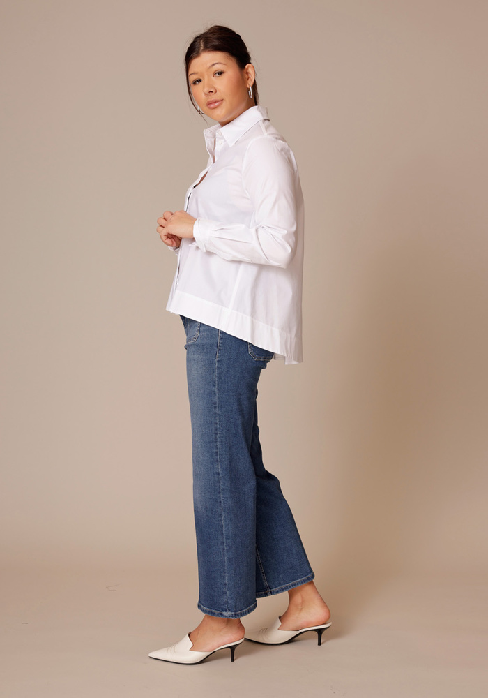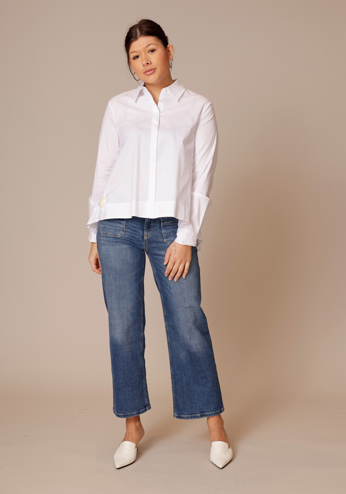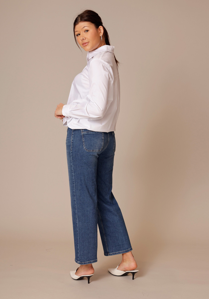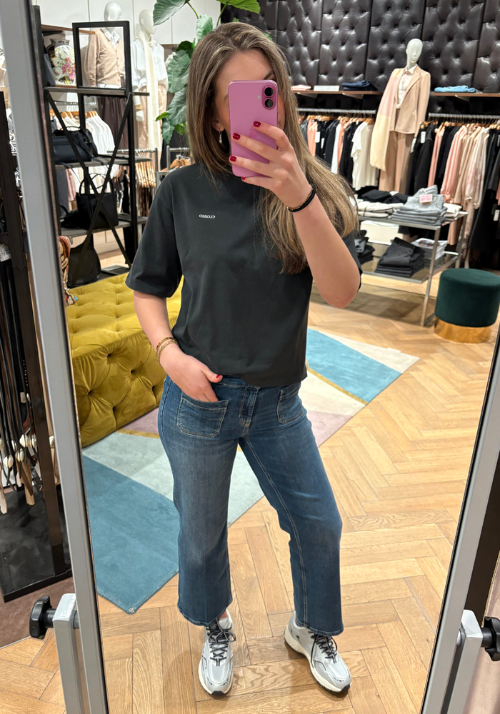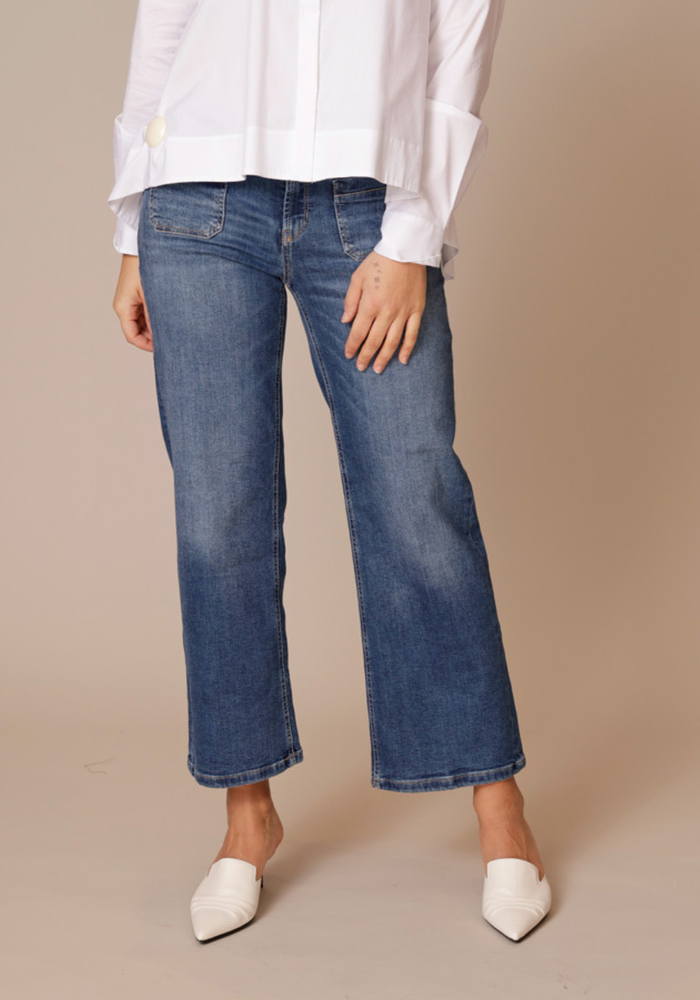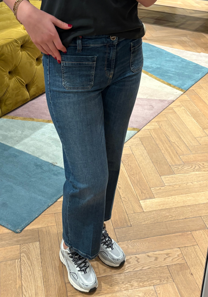 De Tess pocket jeans is een jeans met een cropped lengte. De jeans heeft twee steekzakken aan de voorzijde en een knoop -en ritssluiting.